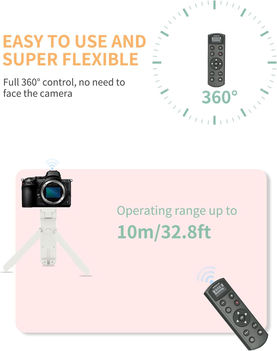 - Photo Shooting and Video Recording:This wireless shutter release for nikon supports immediate Release,shooting videos. It requires no line of sight to the camera with operating range up to 10m/32.8ft;Good aider for selfies, group photos, wild animals, macro photography, star trails, landscape photography