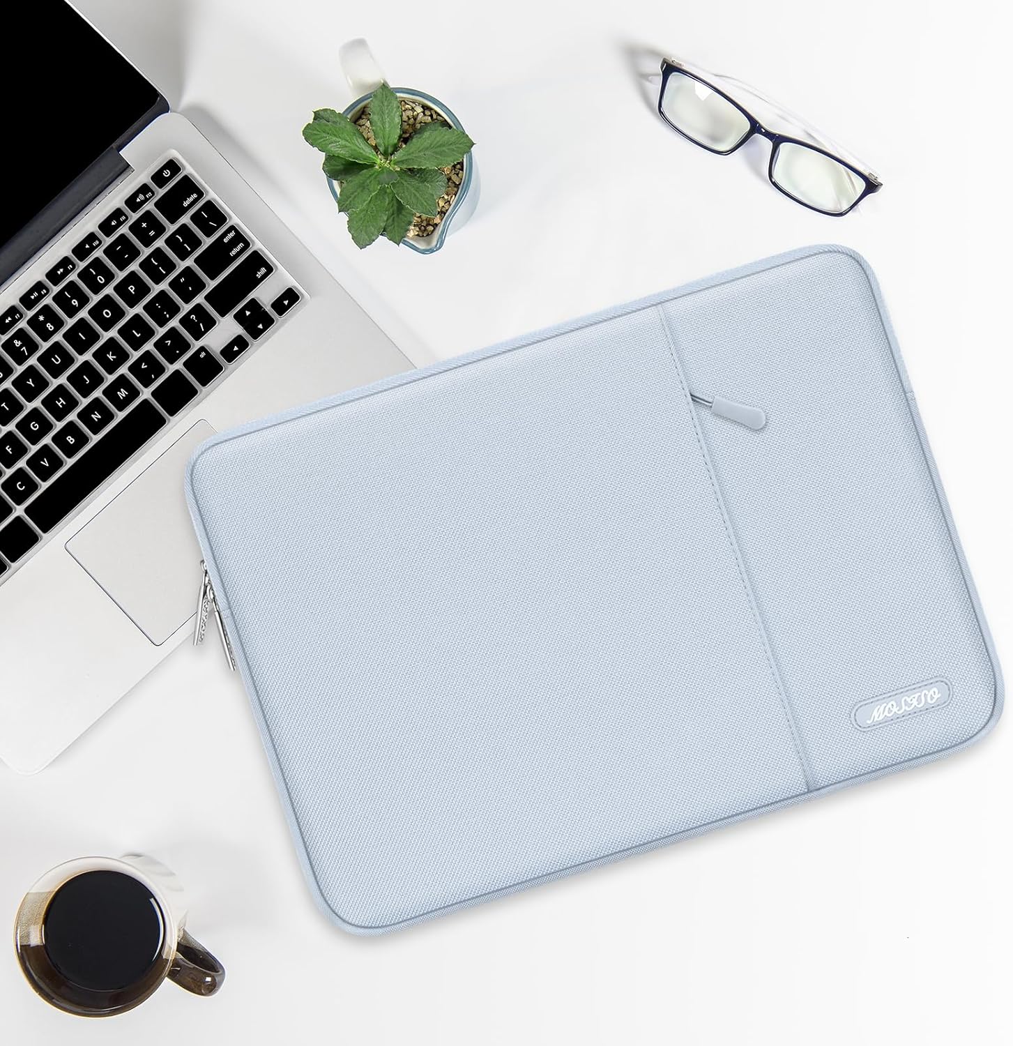 MOSISO Laptop Case 14 inch, 14 inch Laptop Sleeve Compatible with HP Lenovo Dell ASUS Acer, HP Stream, Dell Latitude, Lenovo IdeaPad, Polyester Vertical Computer Sleeve Bag with Pocket, Baby Blue