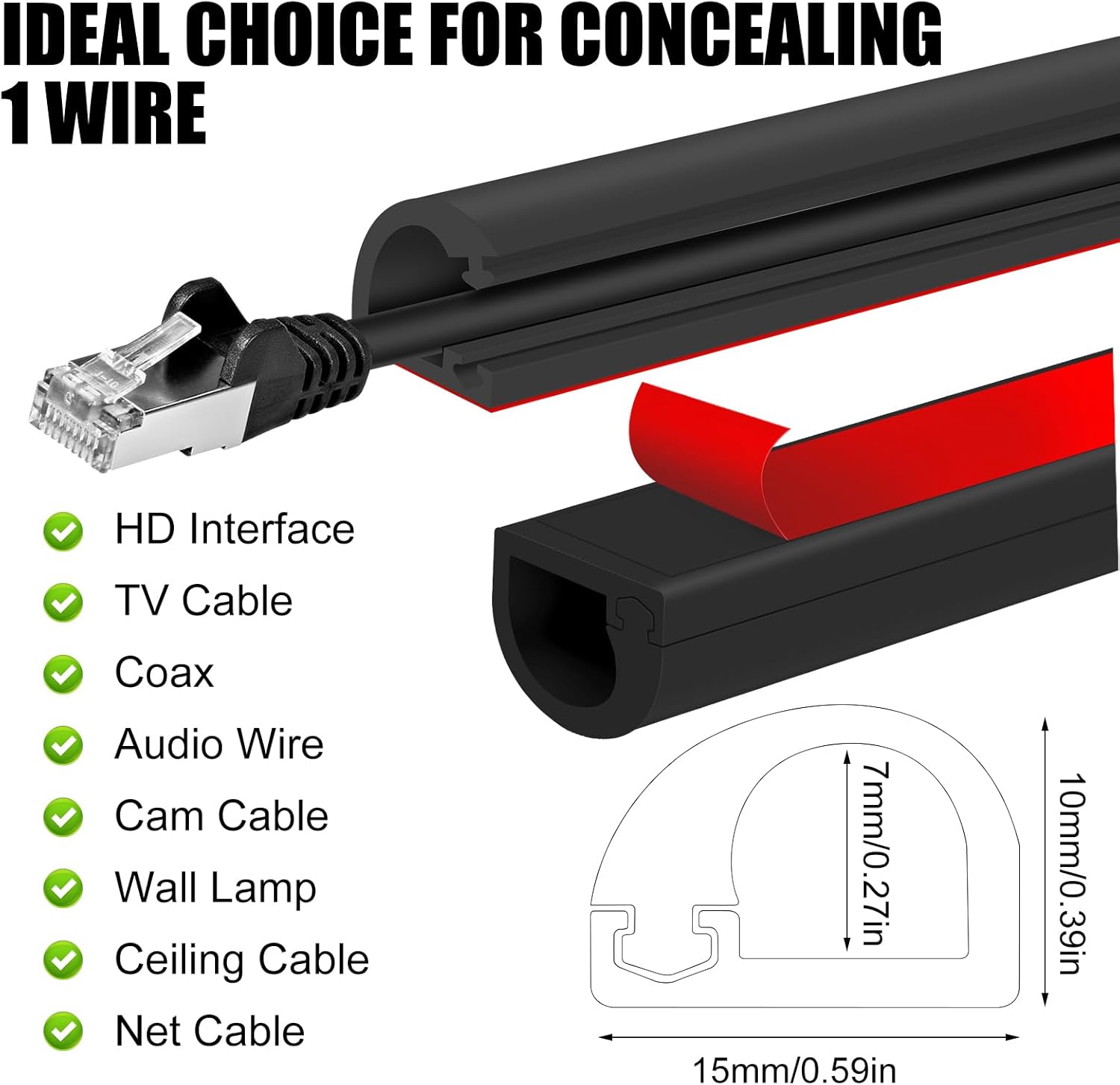 - 【Perfect Fit for 1-2 Cables】Designed to hide up to 2 USB cables or 1 HDMI cable, our cable hider boasts a width of 0.59 " and a height of 0.39". It's also ideal for concealing various commonly used cables, such as wall-mounted TV power cords and speaker cables, making it a versatile addition to any home or office corner.