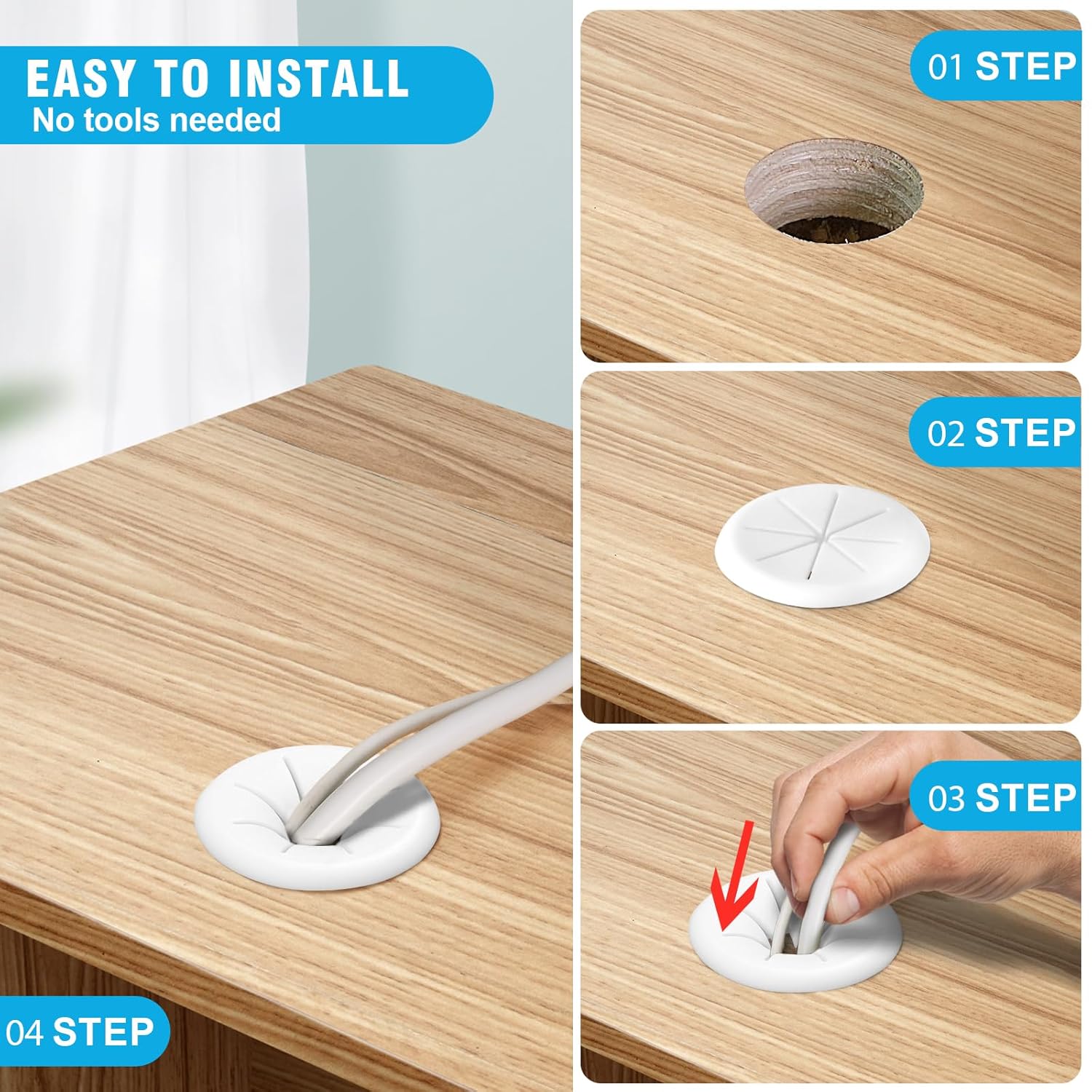- UPGRADED CABLE MANAGEMENT -- The unique star-shaped rubber center effectively reduces friction, and minimizes cable wear from rough desk edges. Cables pass through smoothly without damage, and the flexible opening ensures a snug fit for multiple cables while keeping your workspace tidy.