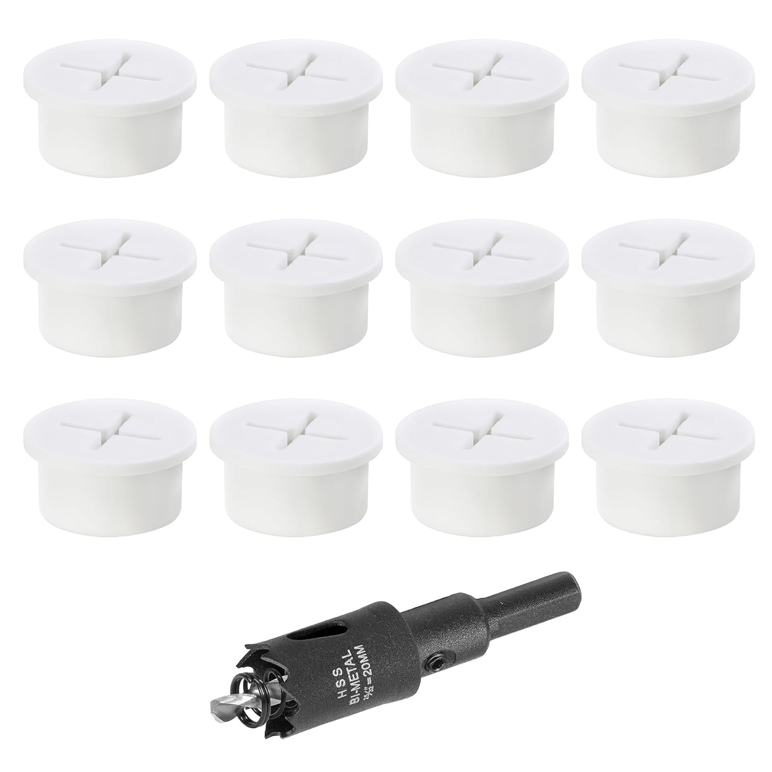 3/4" White Desk Grommet, JTemgle Flexible Cable Grommet with Bi-Metal Hole Saw Cross Rubber Cable Hole Cover Wire Organizer Caps Desktop Cord Management for Home Office TV Stands Tabletops, 13 Pieces