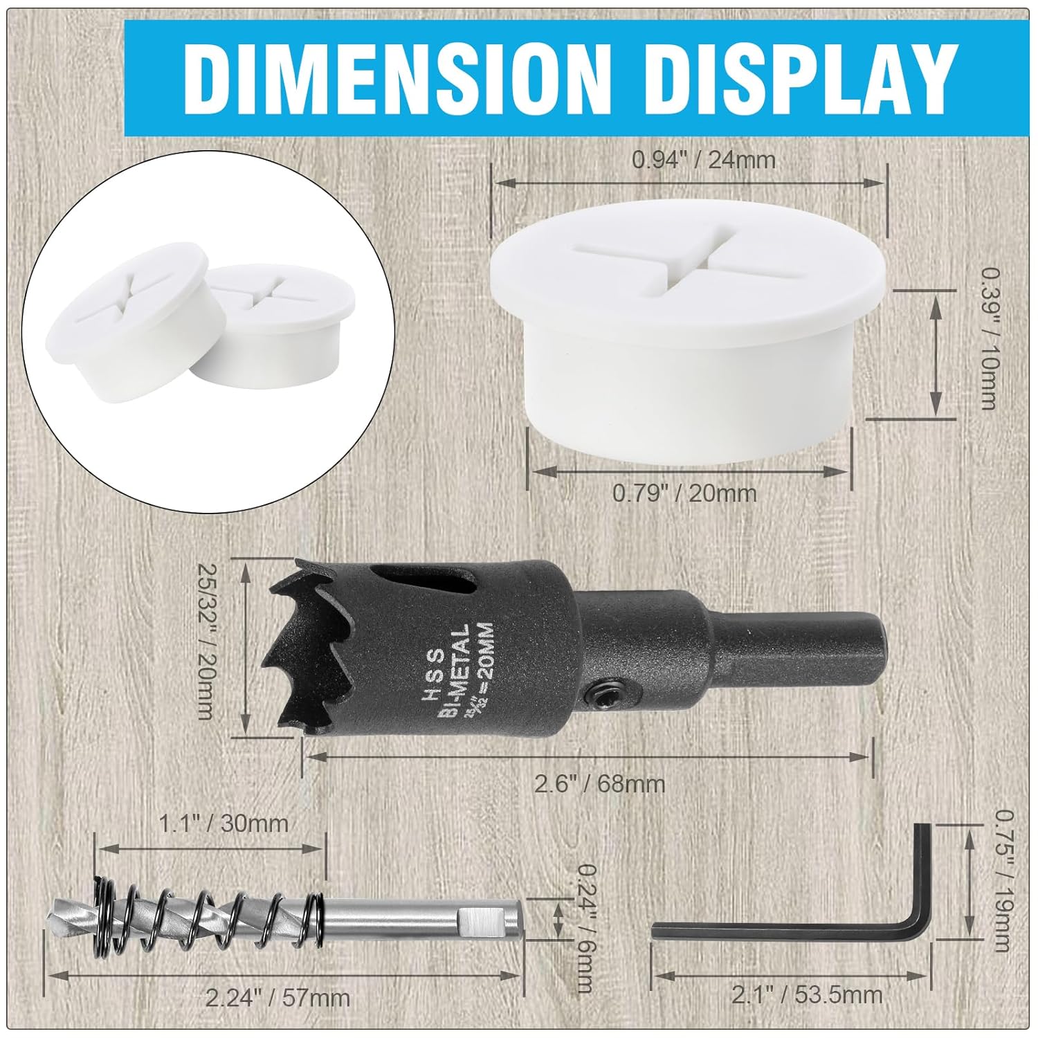 - DELIGHTS PACKAGE -- Your package includes 12 x 20mm desk grommets, 1 x 20mm Hole Saw. Useful Tips: ① Make sure the hole's edges are smooth and free of splinters that could damage your cables or the grommet, ② Place the grommet into the hole. It should fit snugly, ③Finally, route your cables through the desk grommet.
