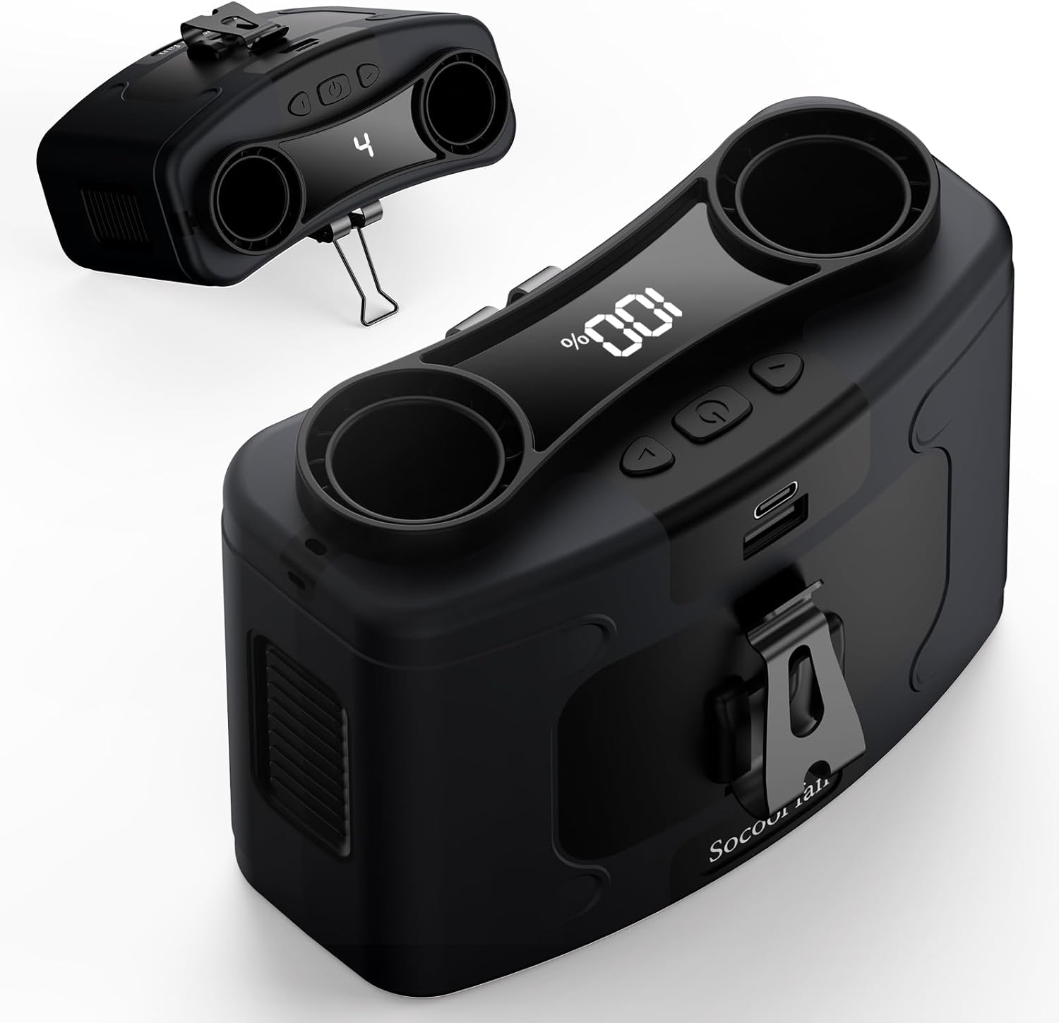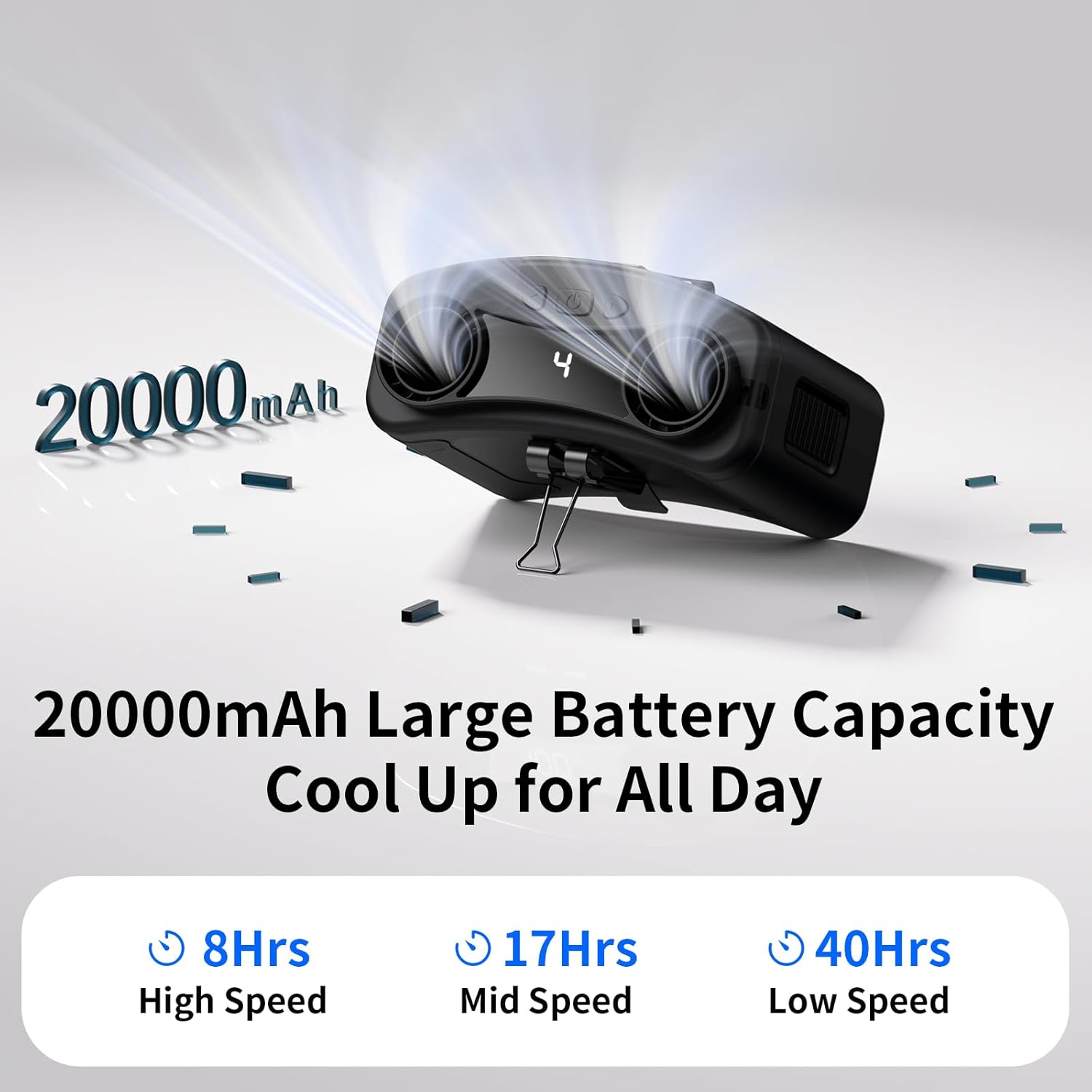 Socool 20000mAh Portable Waist Fan Clip on Wearable Belt Personal Fan Rechargeable, 40H Cooling Battery Operated with 10 Speeds & Dual Air Outlets, Neck Fans Hanging for Outdoor Jobsite Camping