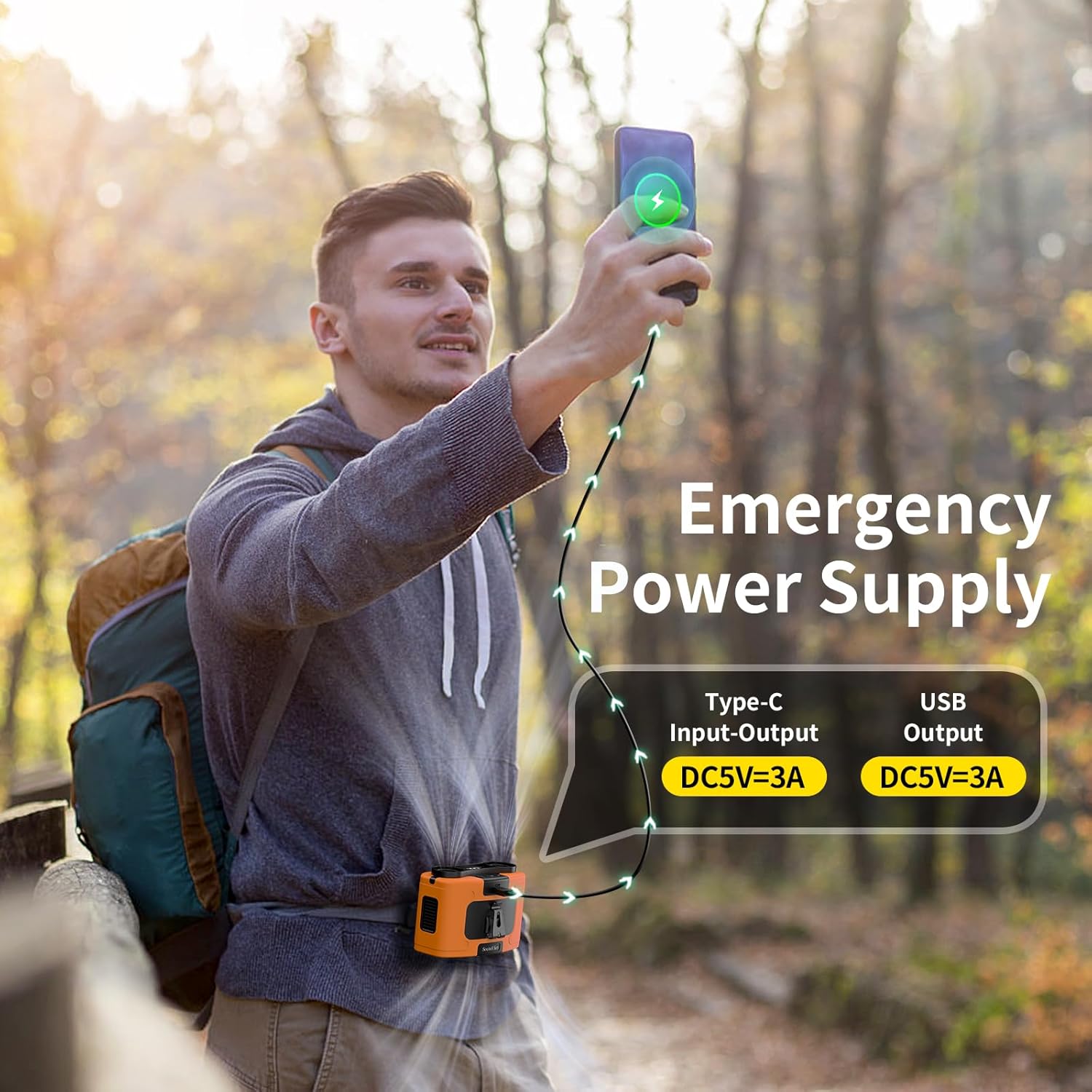 - 【Emergency Power Supply with LED Display】This waist rechargeable fan features a 5V-3A Type-C input for fast charging from USB chargers, laptops, and car chargers and a 5V-3A USB output to charge your phone during power outages or extreme weather. With an LED display design, clearly shows wind speed and battery life, allowing for quick adjustments and timely charging