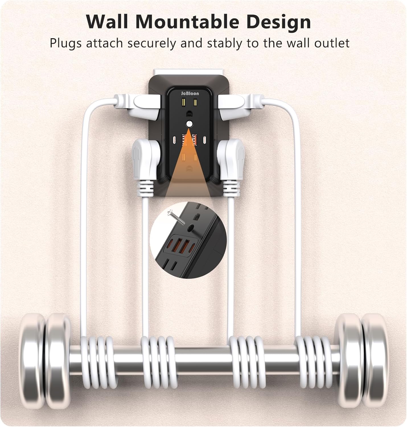 - 【Wall Outlet Surge Protector】With 1050 Joules surge protection, this multiplug wall plug could safeguard your tv, computer, laptop or other appliances from power surges, creating peace of mind, and made of the top-grade ul94 v-0 flame-retardant material, ensure your electricity safety.