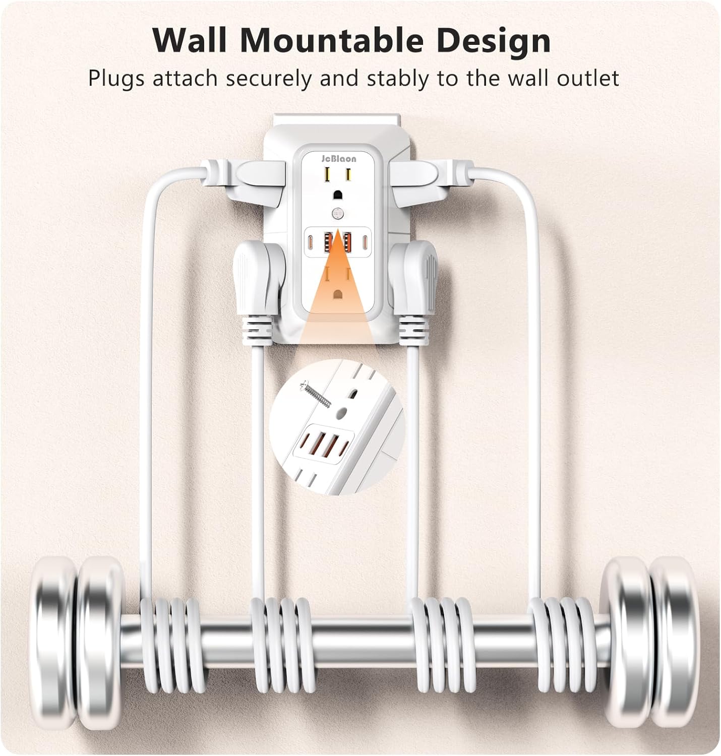 - 【Wall Outlet Surge Protector】With 1050 Joules surge protection, this multiplug wall plug could safeguard your tv, computer, laptop or other appliances from power surges, creating peace of mind, and made of the top-grade ul94 v-0 flame-retardant material, ensure your electricity safety.
