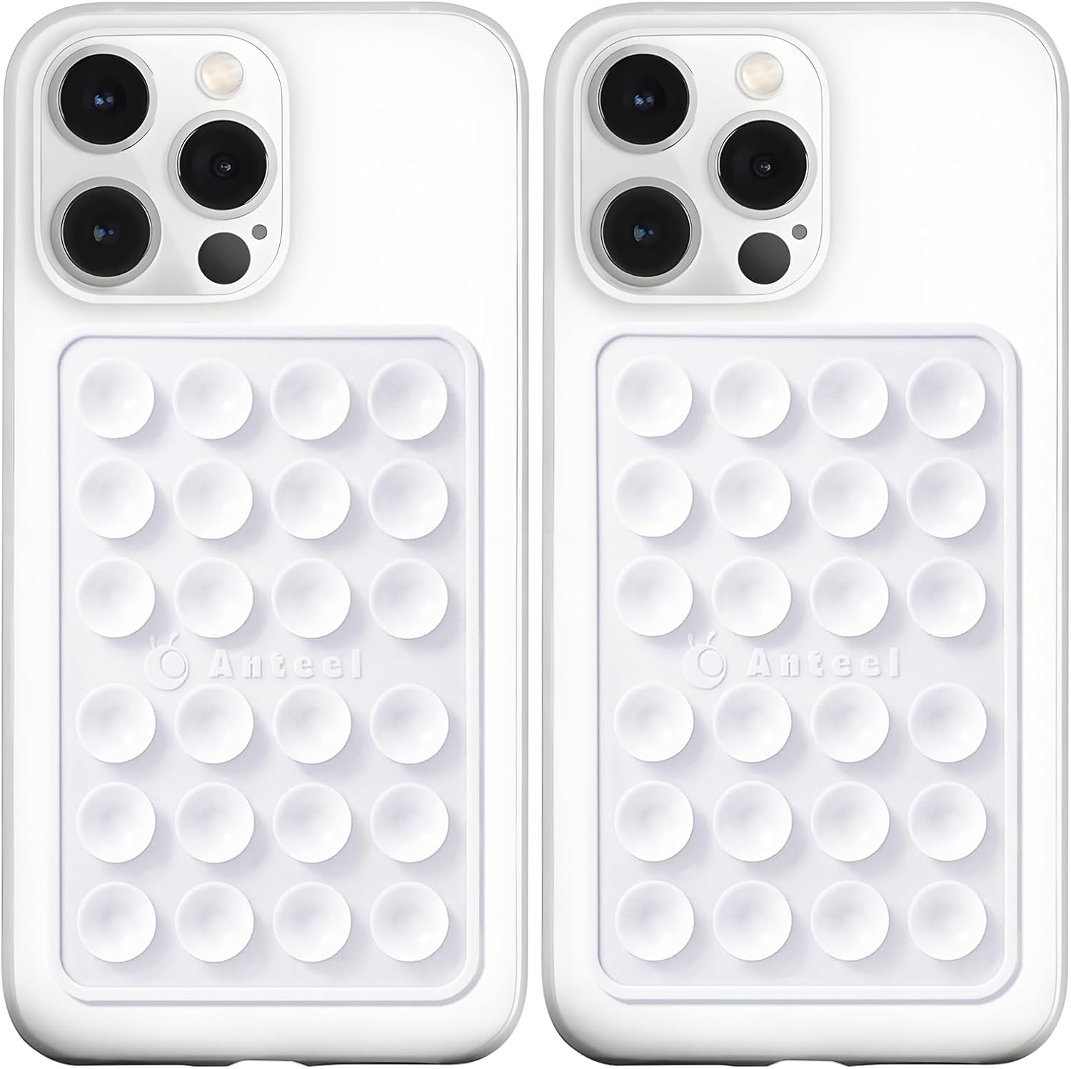Anteel MAX Silicone Suction Phone Case Adhesive Mount, Upgraded Super Strong Grip, Durable, Easy to Use, Hands-Free Sticky Phone Holder for Selfies, Tiktok Videos, 2.56"x3.94" (WHT&WHT)