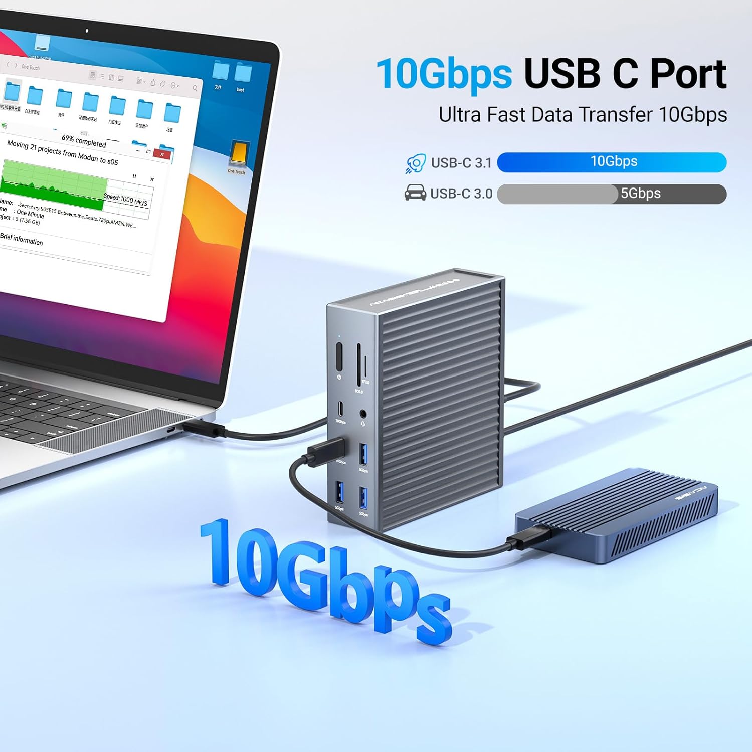 - 【PD 100W Fast Charging】:With 100W Charging USB C port, this usb c dock can charge your laptops/tablets/phone quickly when you using other ports.