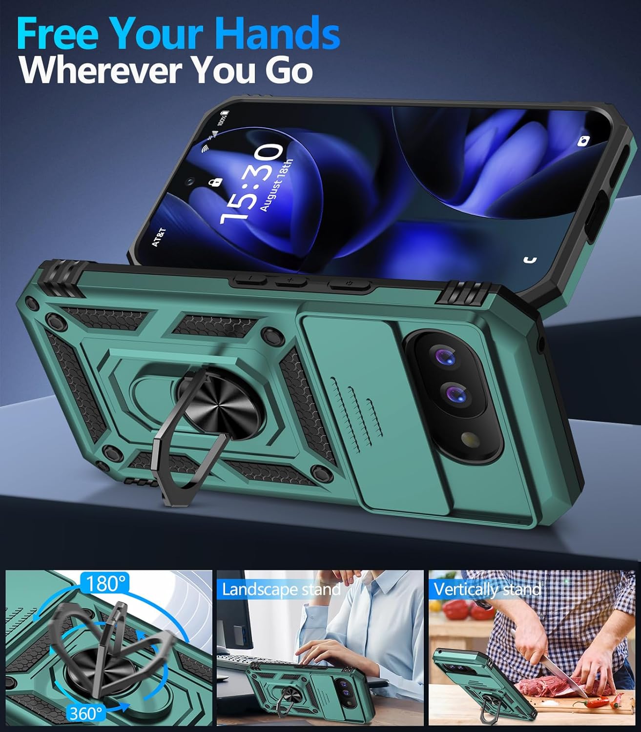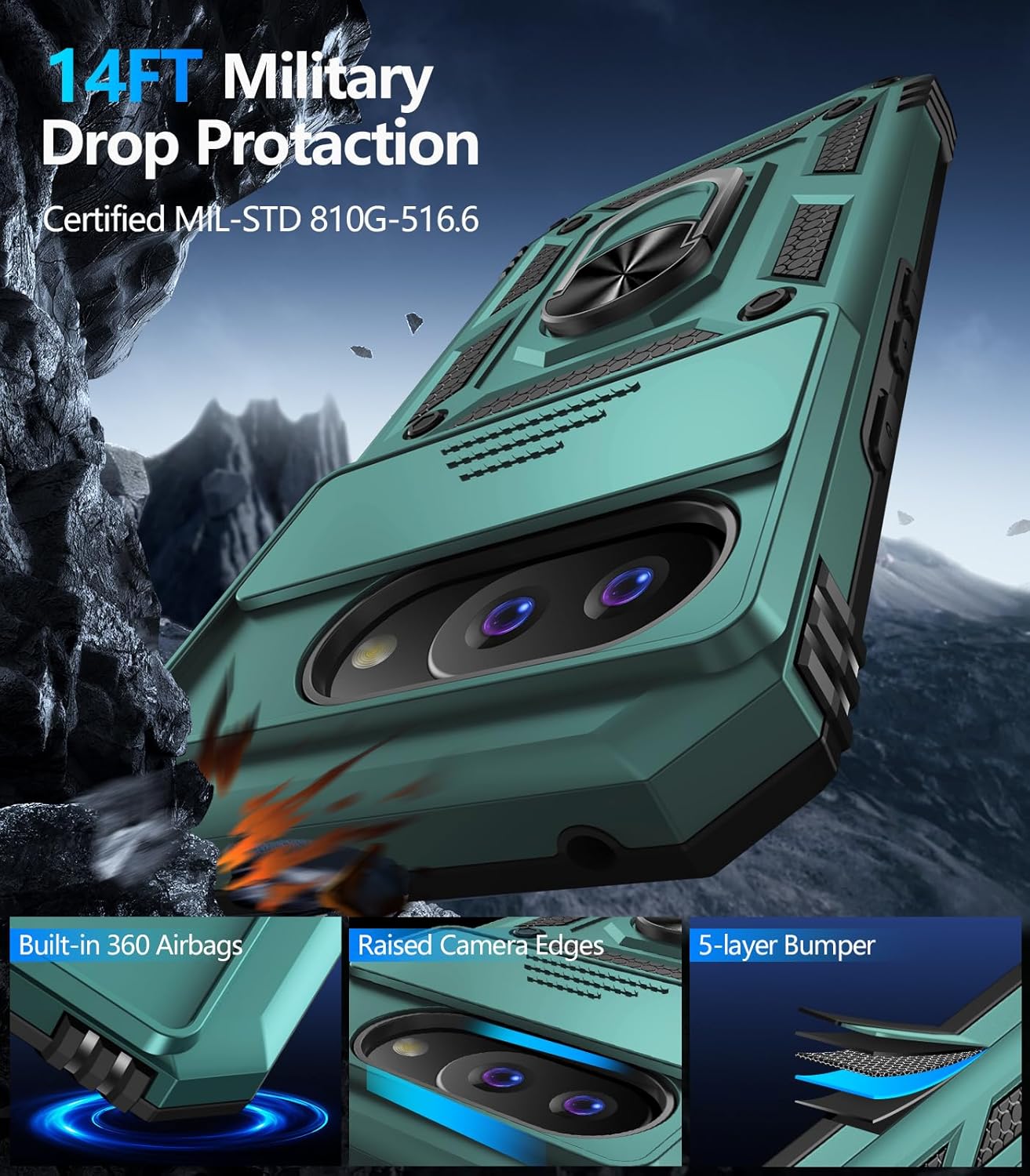 - 【Full Body Protection】For Google Pixel 9A Phone Case is military-grade drop protection. It has exclusive Shock 360° airbags around edges and strong TPU rubber bumpers on the outside edges for shock absorption if dropped. The internal air pad corners as bumpers are rounded and bubble out safely, giving extra room against corner shattering. What's more, Slide Camera Lens Cover, 1.5 mm bezels over the screen and 0.5 mm raised corner lips on the back provides extra and comprehensive protection.