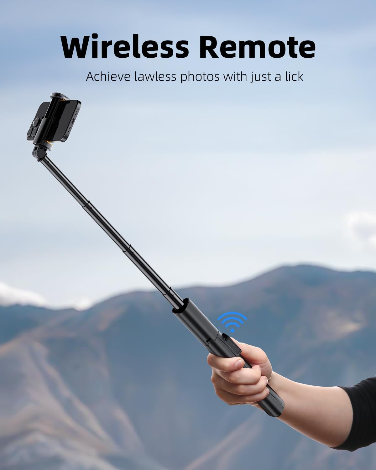 - Wireless Remote: Equipped with a detachable wireless remote control, our selfie stick tripod breaks the barriers of shooting distances, supporting a maximum range of 33 feet. You can capture shots at your own pace and creatively express yourself without the need for assistance with your Phone tripod stand