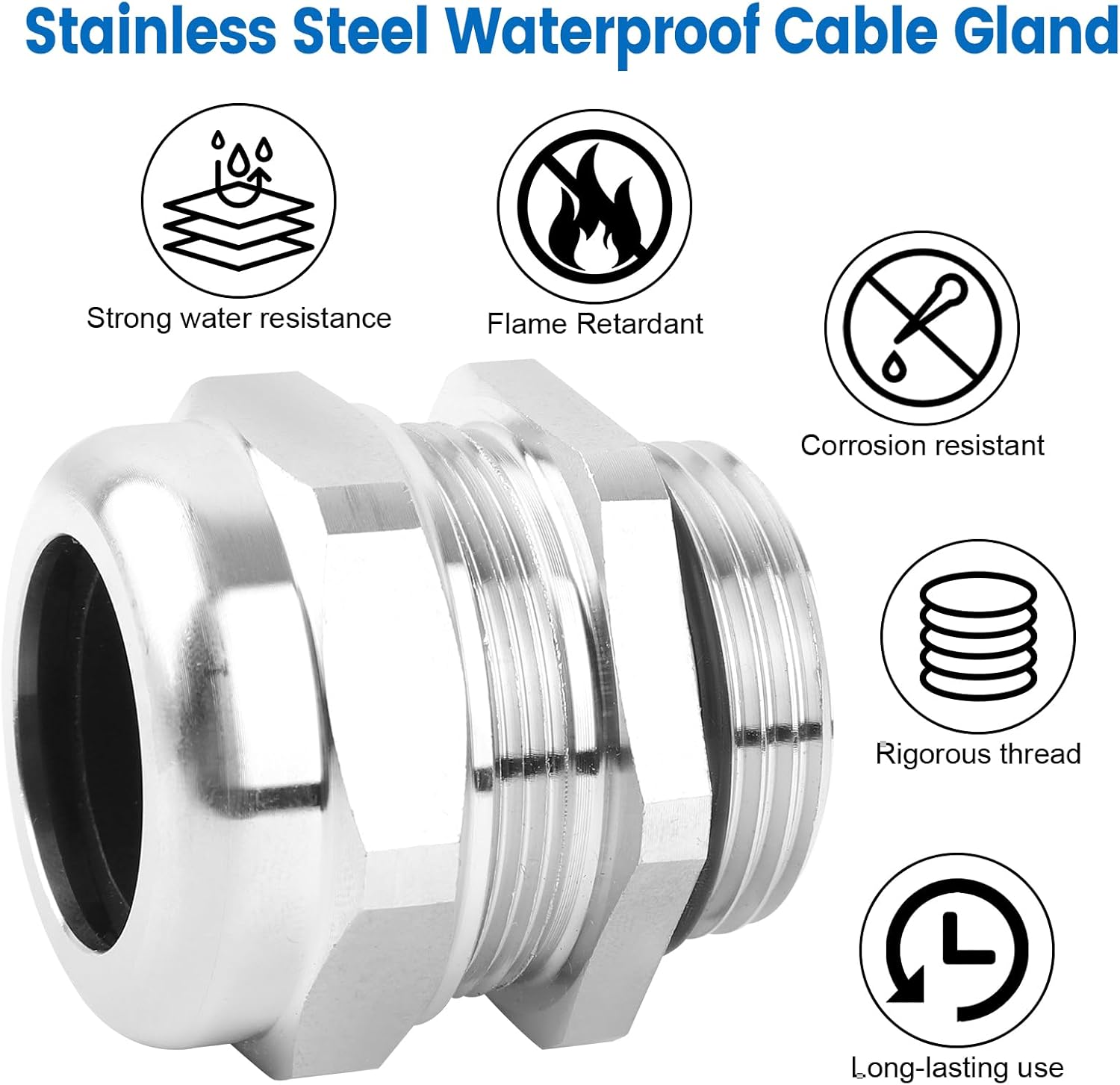 - Reliable&Durable: Stainless steel cable glands offer improved flame retardancy, prolonged service life, and superior heat and abrasion resistance when compared to nylon cable glands. The metal strain relief cord connectors provide enhanced sturdiness and effective strain relief.
