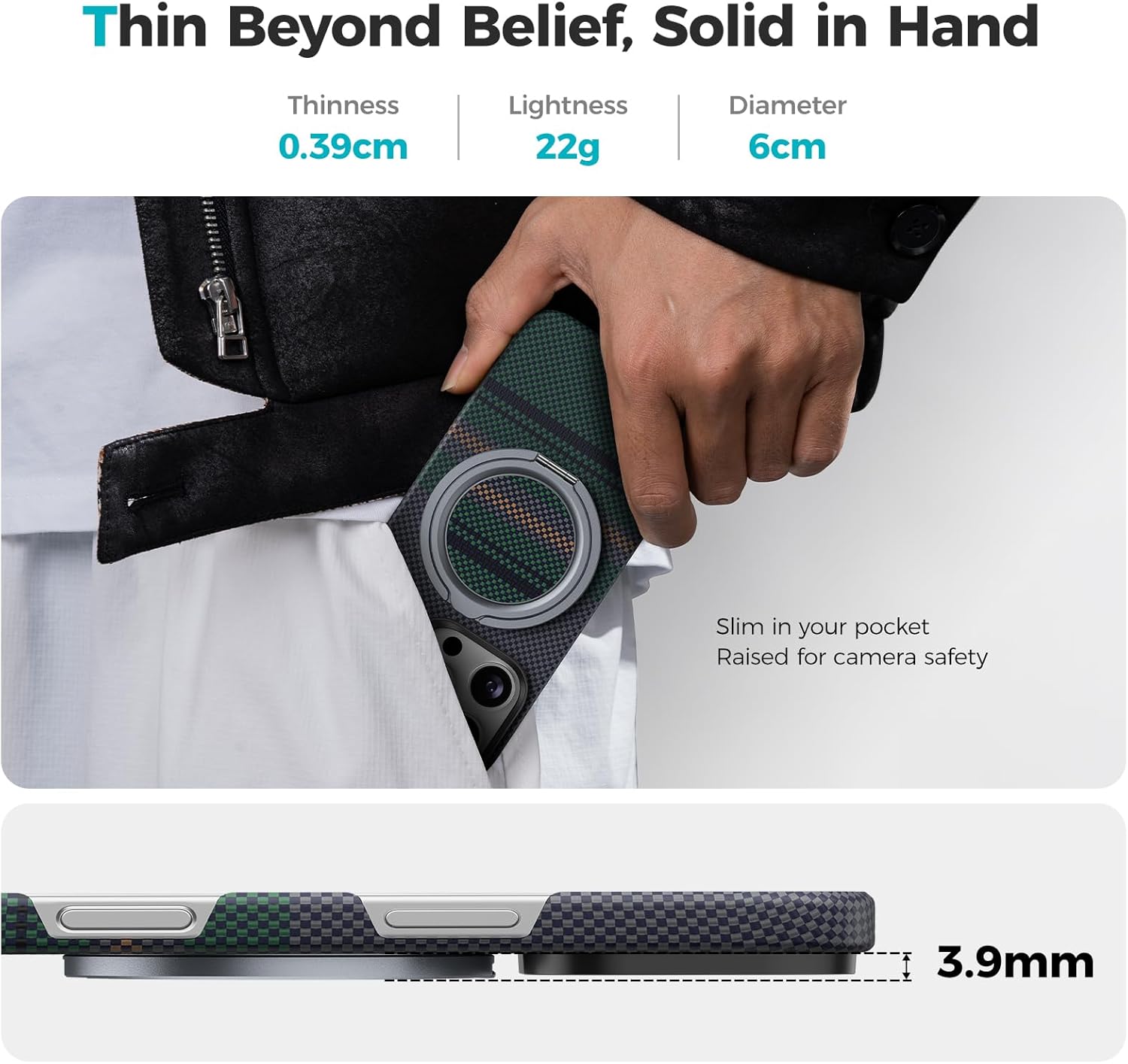 - Slimmer, Lighter, Better: At just 3.9mm thin and 22g light, this MagSafe stand grip is barely there until you need it. It keeps your phone slim, sleek, and comfortable to hold. No added bulk—just a clean, minimalist grip that stays out of the way when not in use.