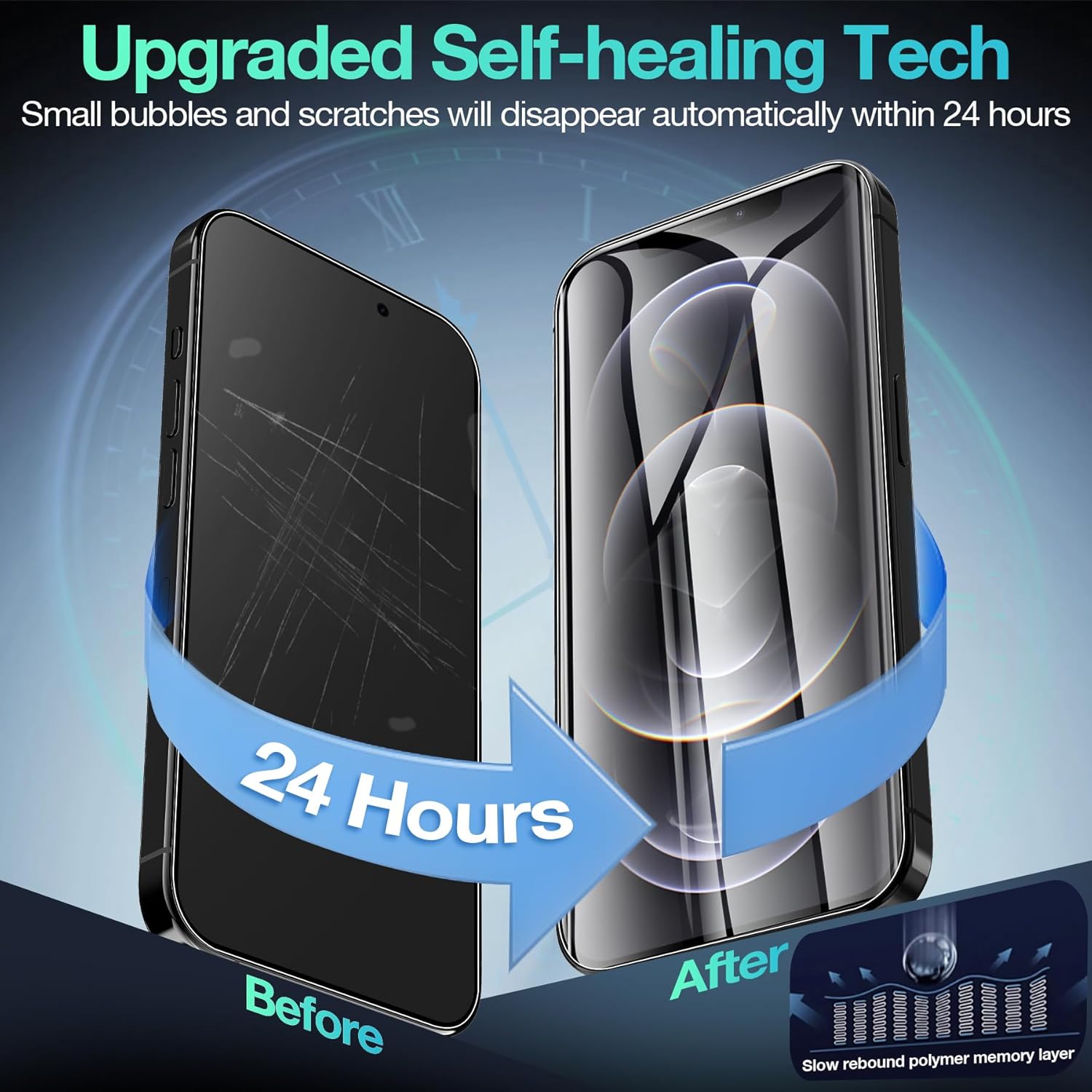 - 【Scratch Auto-Repair】- The screen protector iPhone 12 Pro Max has slow rebound technology and self-healing power. Minor scratches and bubbles will automatically be repaired within 24 hours. (If there are bubbles after installation, please do not tear off and wait for 24h)