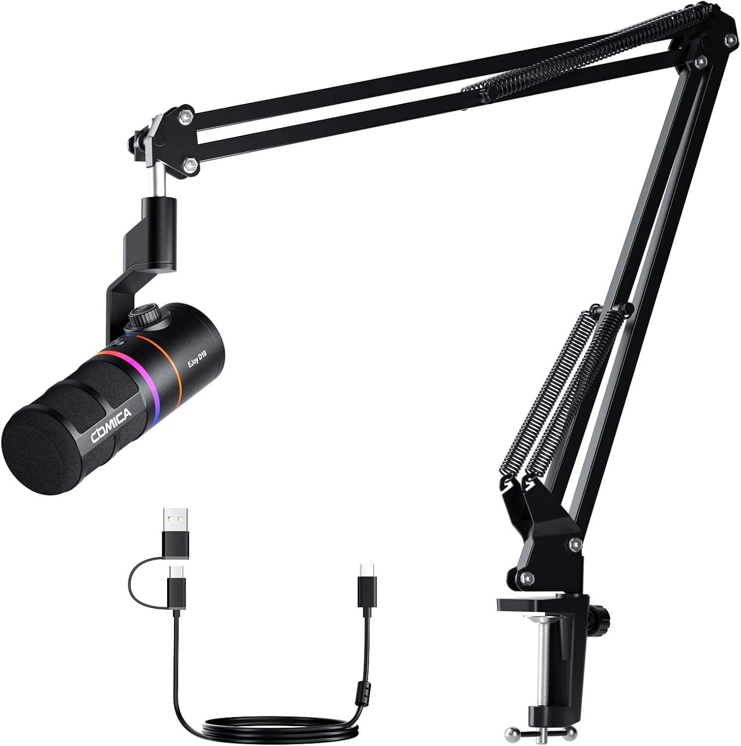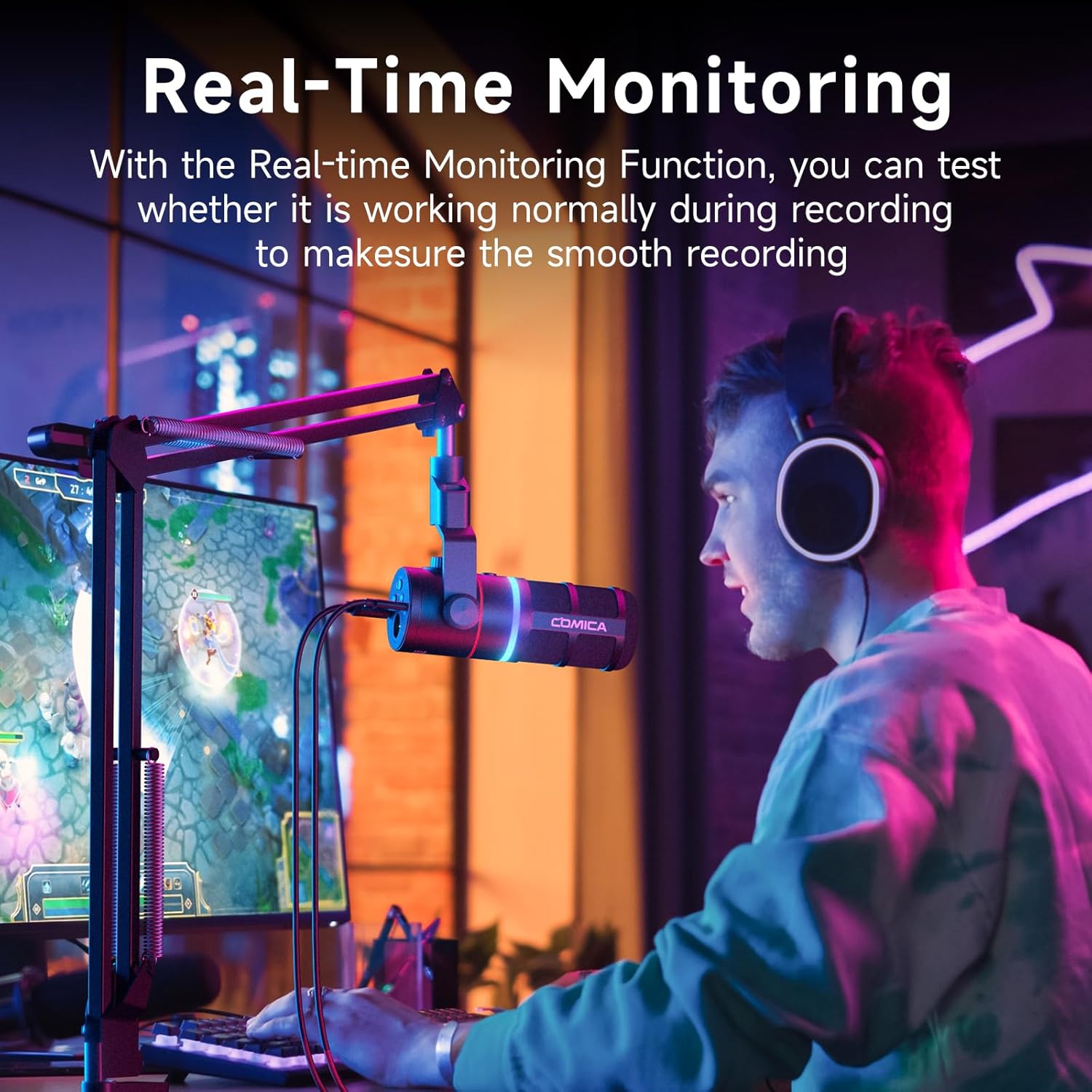 COMICA EJoy D10(A) USB Gaming Microphone – Boom Arm Mic with Noise Cancellation, XLR/USB-C, Real-Time Monitoring, Muting, RGB Professional Studio Mic for Gaming, Streaming, Podcast, Recording (Black)