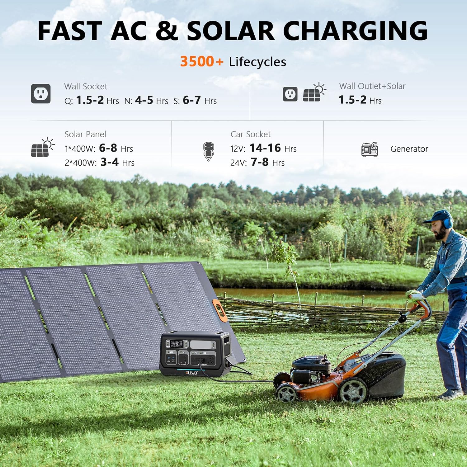 ALLWEI LiFePO4 Portable Power Station 2400W(Surge 4800W) with 1x 400W Solar Panel Included, Fast Charge in 1.5H, 4 AC Outlet, 2048Wh Solar Generator for RV Camping Emergency Outdoor Home Use