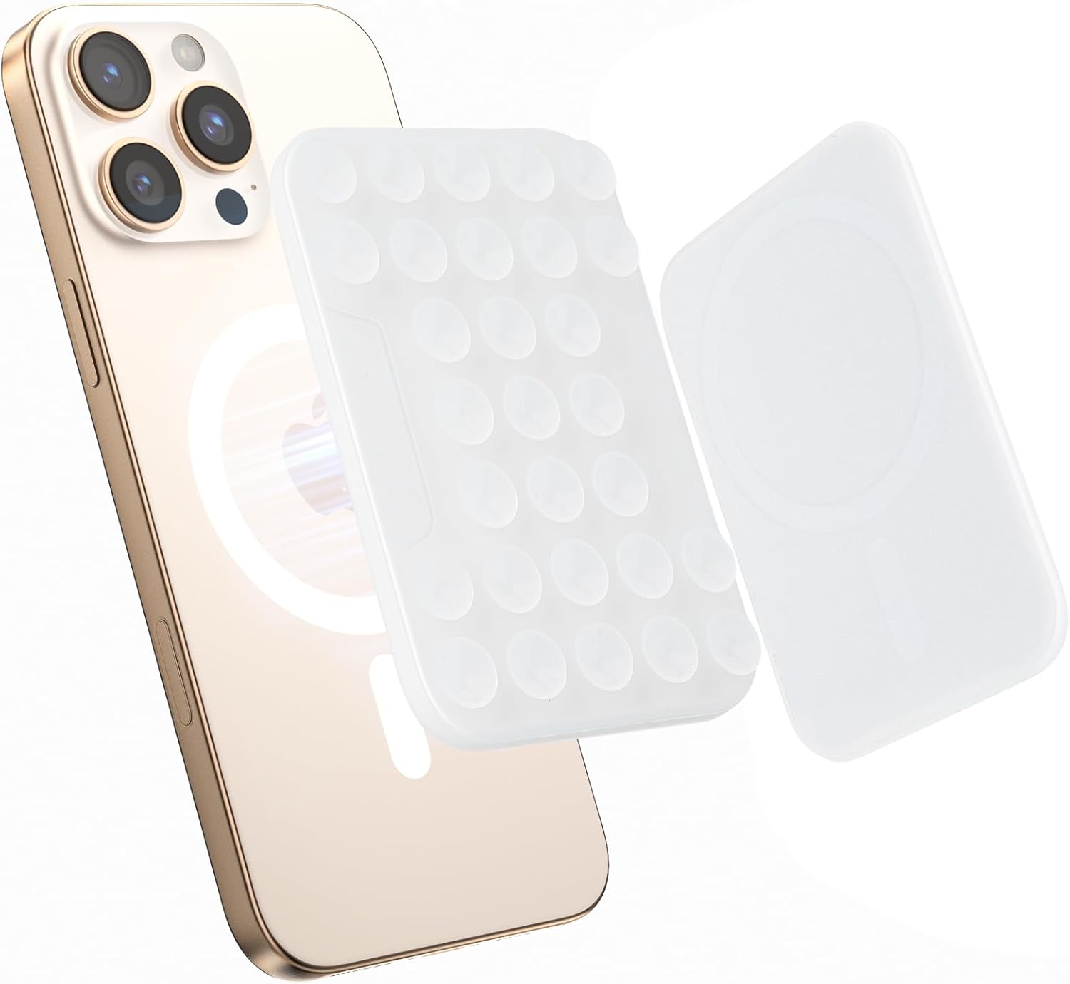 SUPERONE Magnetic Suction Phone Mount for MagSafe Case, Magnetic Silicone Sticky Phone Grip Holder for iPhone 16/15/14/13/12 Series, Hands-Free for Makeup/Selfie/Live Streaming/Vlog/TikTok - Clear