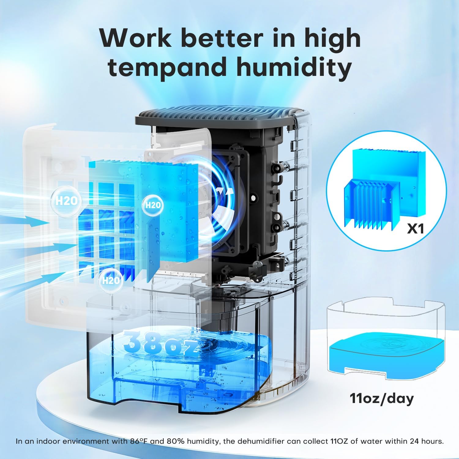 - Efficient dehumidification helper: Using advanced semiconductor technology, it can dehumidify 11 OZ of water every 24 hours in an 86°F, 80% humidity equipment environment, effectively removing excessive humidity from small spaces such as bathrooms, closets and RVs, thus keeping you away from moisture.