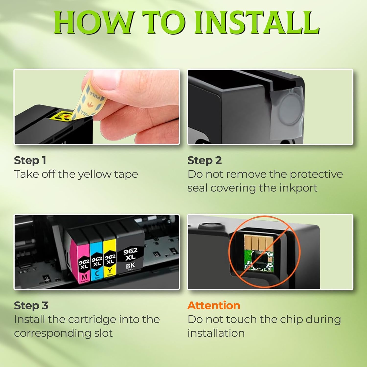 - Package Includes: 962 xl color ink cartridges combo pack 962 962XL 962 XL(1 Cyan 1 Magenta 1 Yellow) 3 Packs.