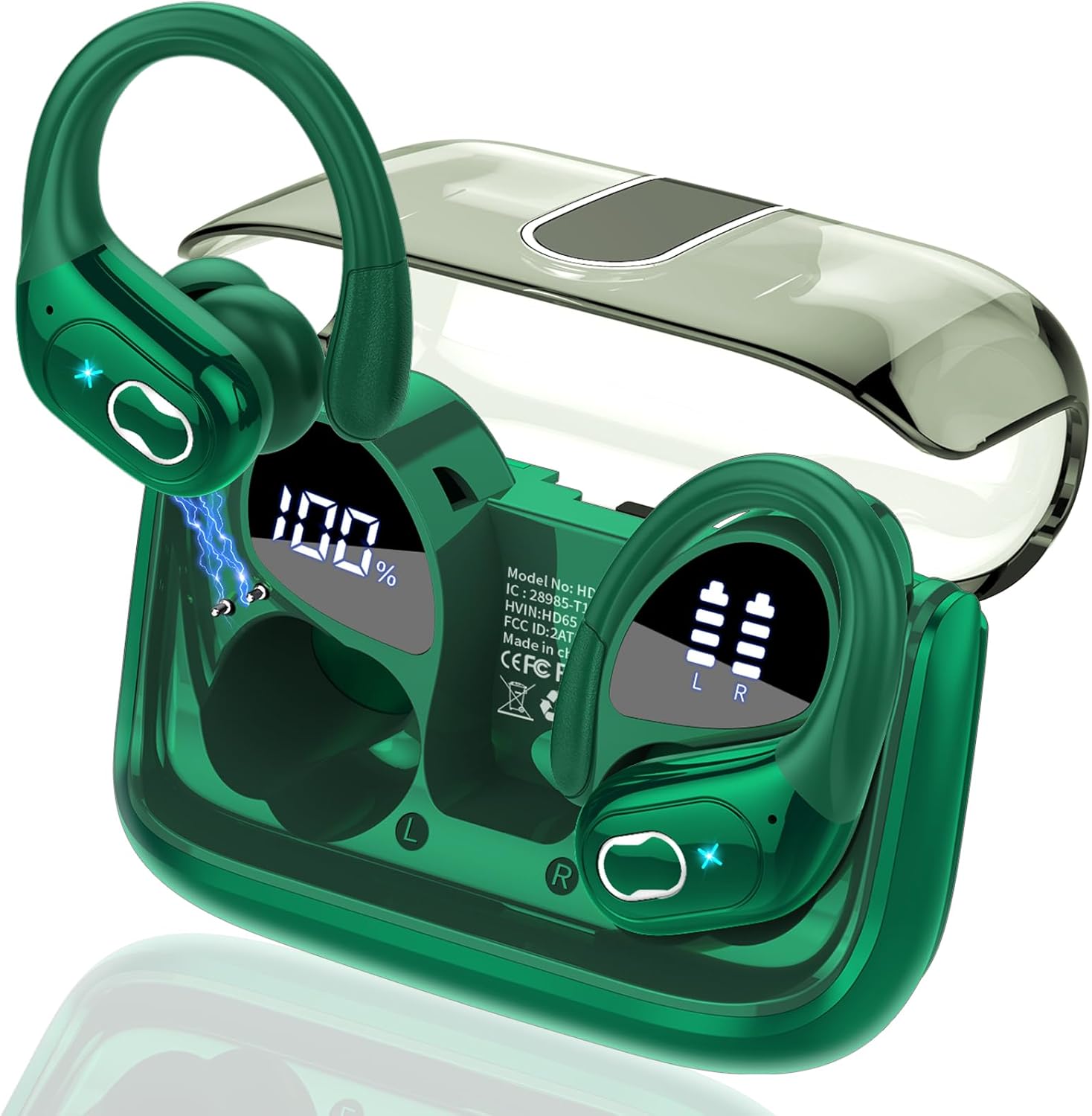 Wireless Earbuds 75hrs Bluetooth 5.4 Headphone Sport, 2025 Bluetooth Earbuds Stereo Deep Bass Over Ear Bud with Earhooks, ENC Noise Cancelling Mic, IPX7 Waterproof Earphone, Dark Green