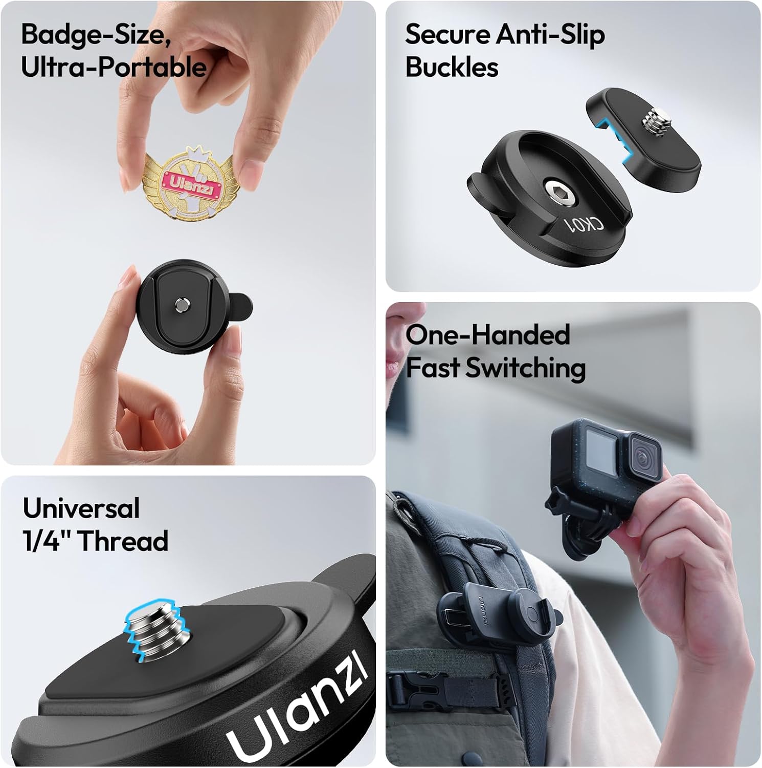 - Next-Level Quick-Release: A new ecosystem designed for compactness, effortless operation, and peak efficiency in every photo and video shoot. Badge-Size, Ultra-Portable; Secure Anti-Slip Buckles; One-Handed Fast Switching; Universal 1/4" Thread