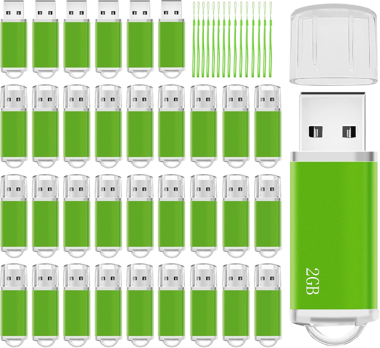Memorias USB 2GB Flash Drive 50 Pack, USB 2.0 Thumb Drives Bulk Memory Sticks 2GB Fat USB Flash Drives Bulk Jump Drives Multipack Pack of 50 with Lanyard(Green 50 Packs 2 GB)