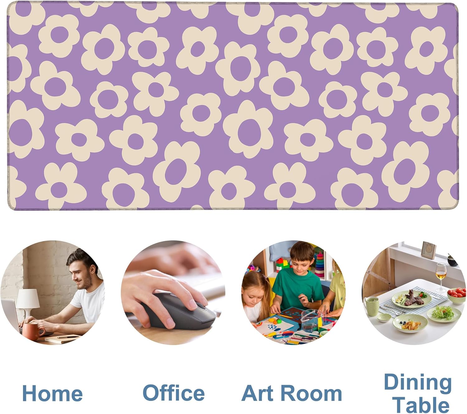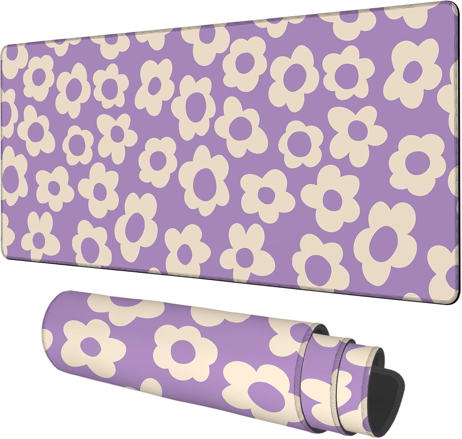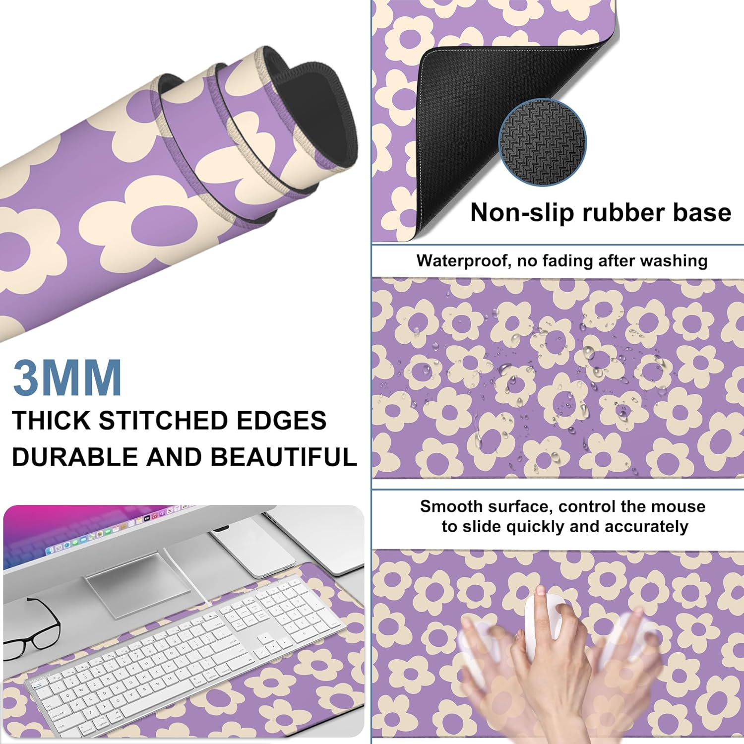 Vintage Groovy Flowers Gaming Mouse Pad 3mm Thick Stitched Edge Waterproof Non-Slip Large Computer Keyboard Mouse Mat,Suitable for Office Entertainment Decorative Desk Pad 35.4 x 15.7 Inches