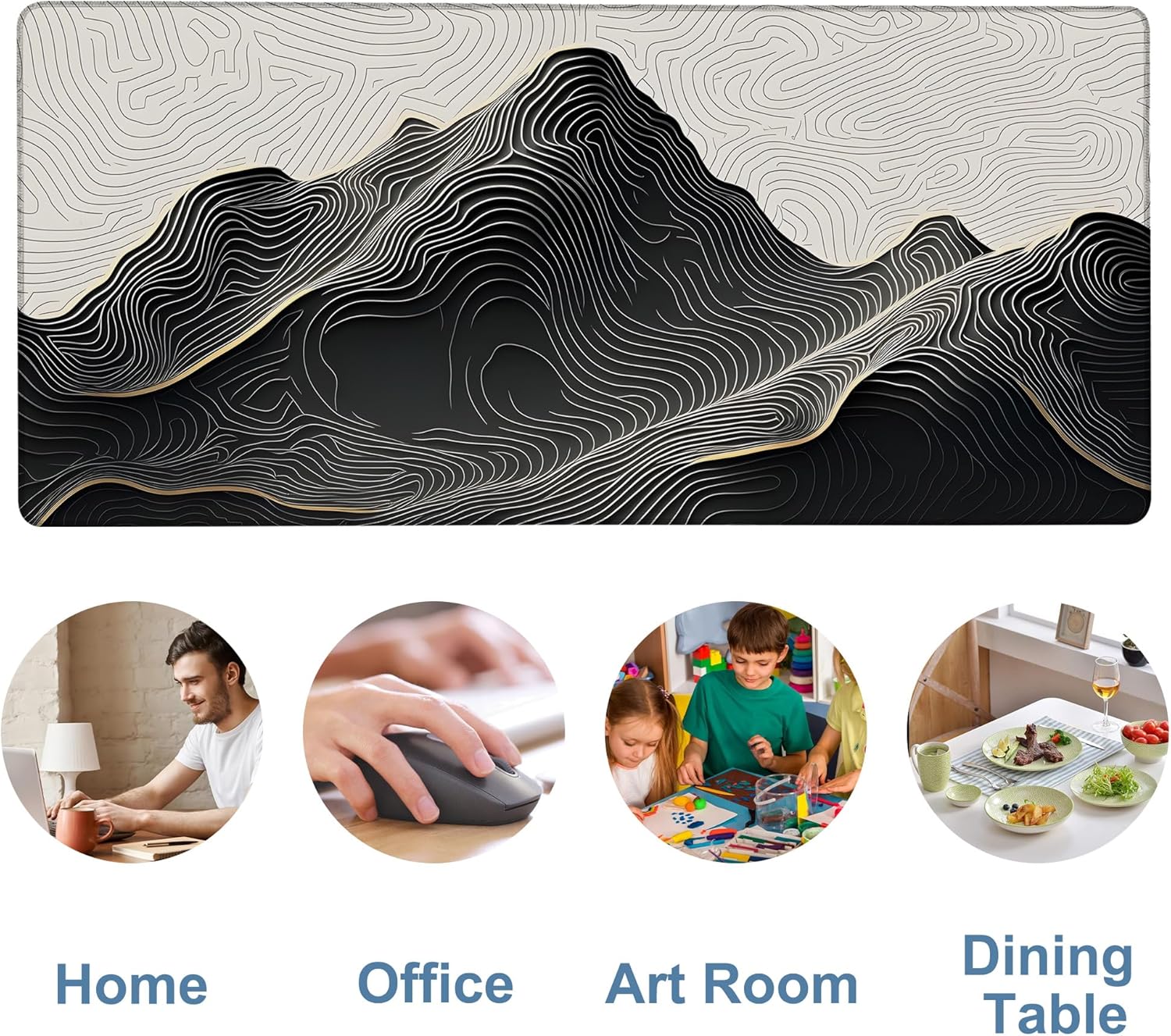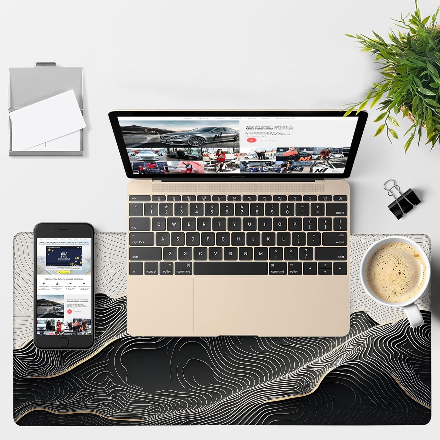 Gaming Desk Pad Large Extra Length Abstract Lines Mouse Pad Keyboard Laptop Non-Slip Waterproof with Rubber Base Thick Stitched Edge Mouse Mat for Office Home 35.4 x 15.7 Inches
