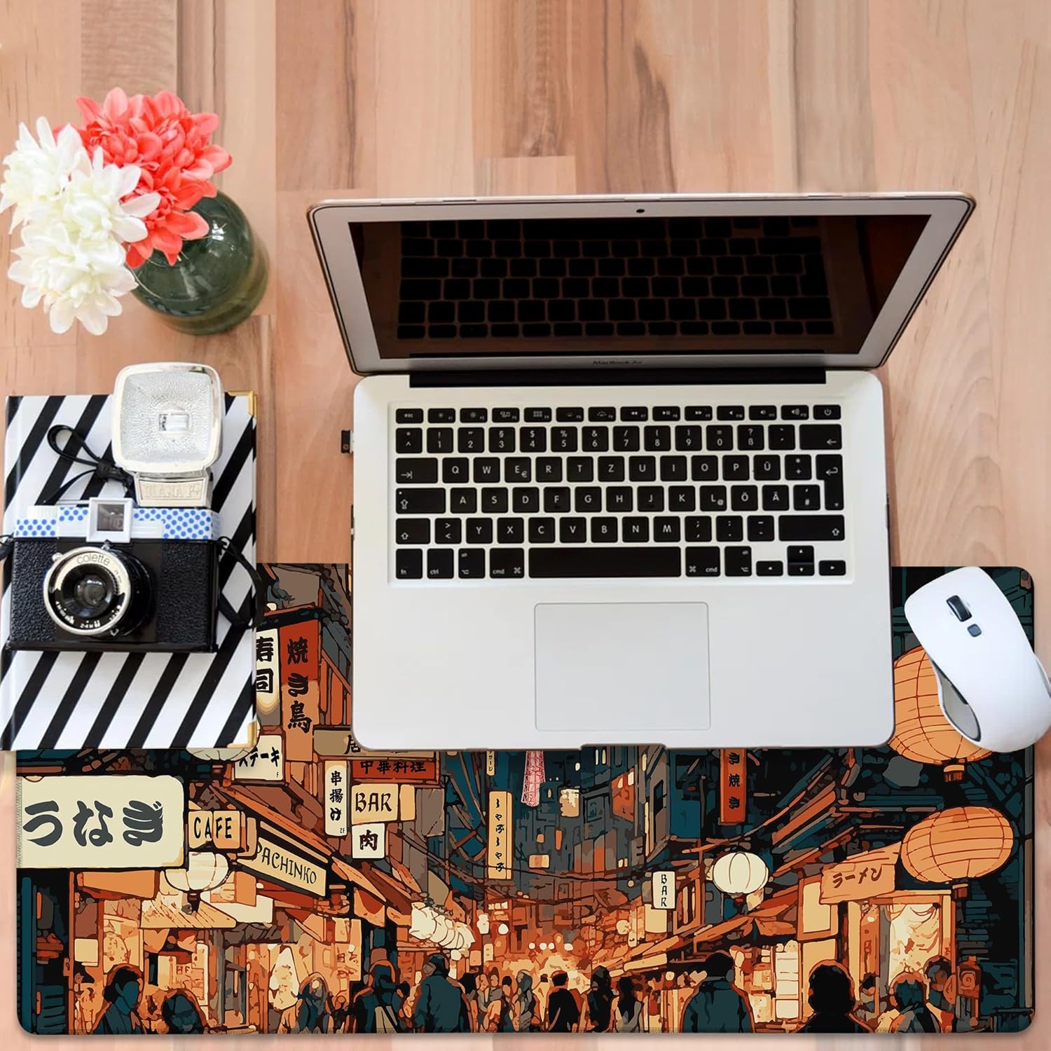 Gaming Desk Pad Large Extra Length Tokyo Japan Mouse Pad Keyboard Laptop Non-Slip Waterproof with Rubber Base Thick Stitched Edge Mouse Mat for Office Home 35.4 x 15.7 Inches