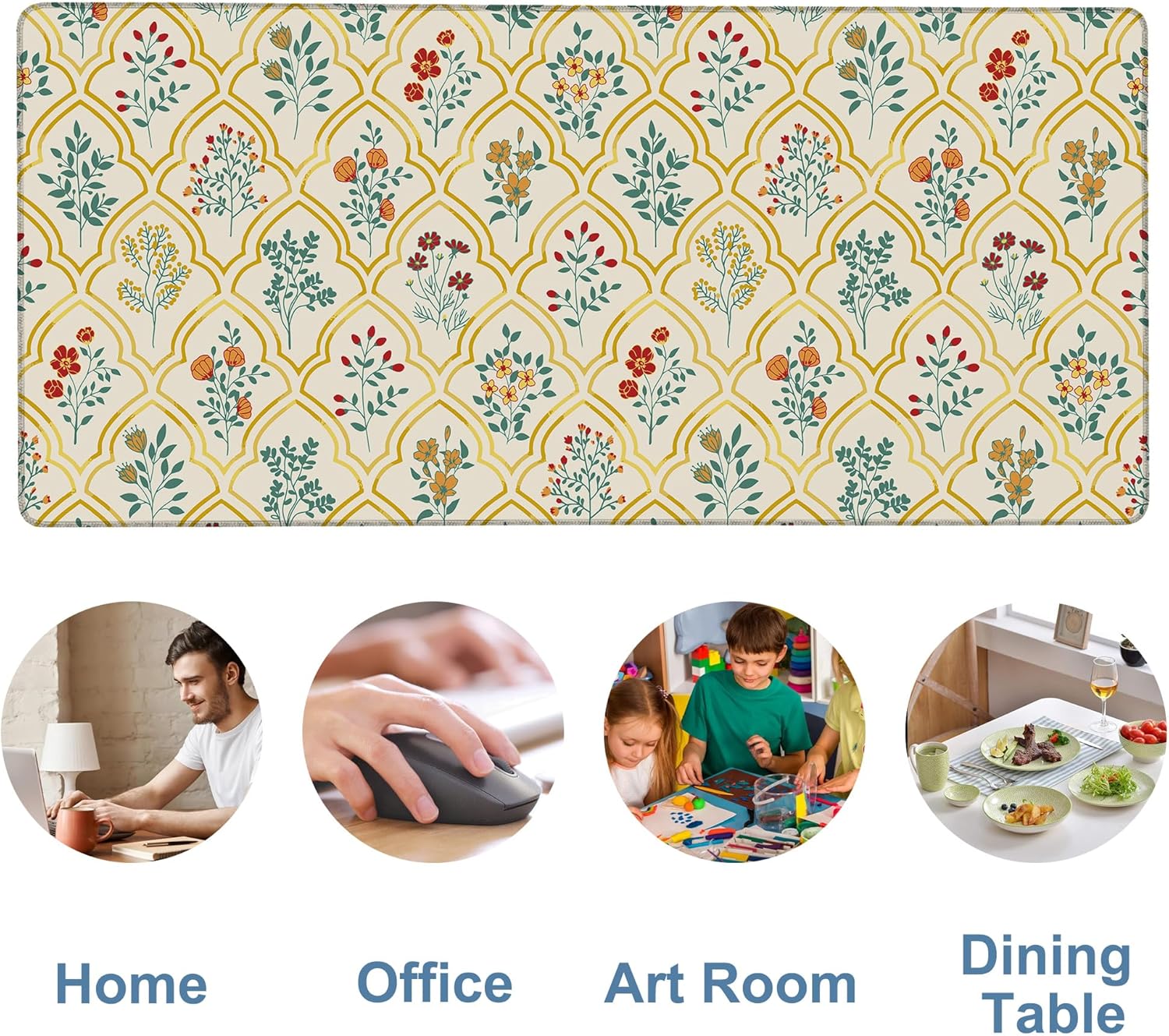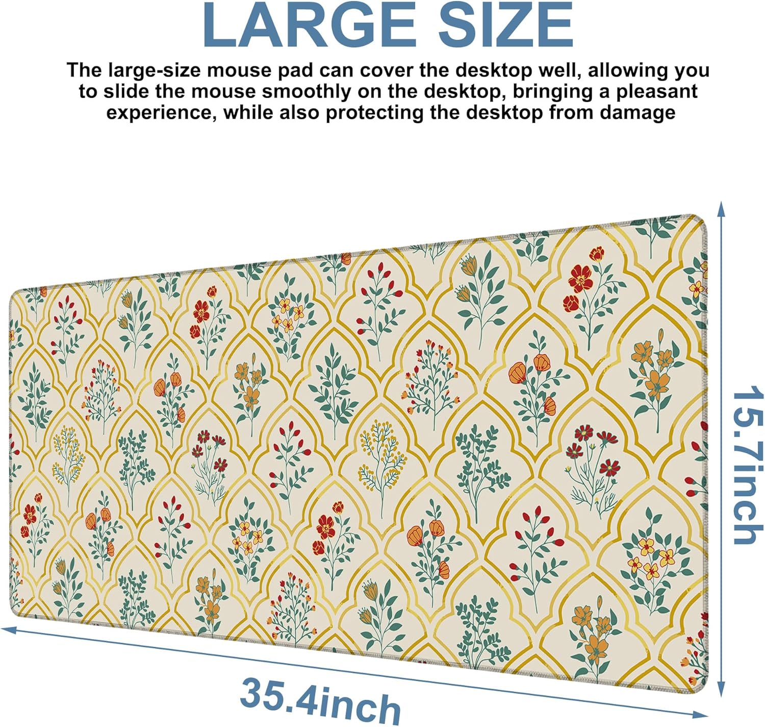 Large Mouse Pad Decorative Floral Gaming Desk Pad Computer Keyboard Non-Slip Waterproof Mouse Mat with Rubber Base and Stitched Edges Entertainment Office Writing Desk Mat 35.4 x 15.7 Inches