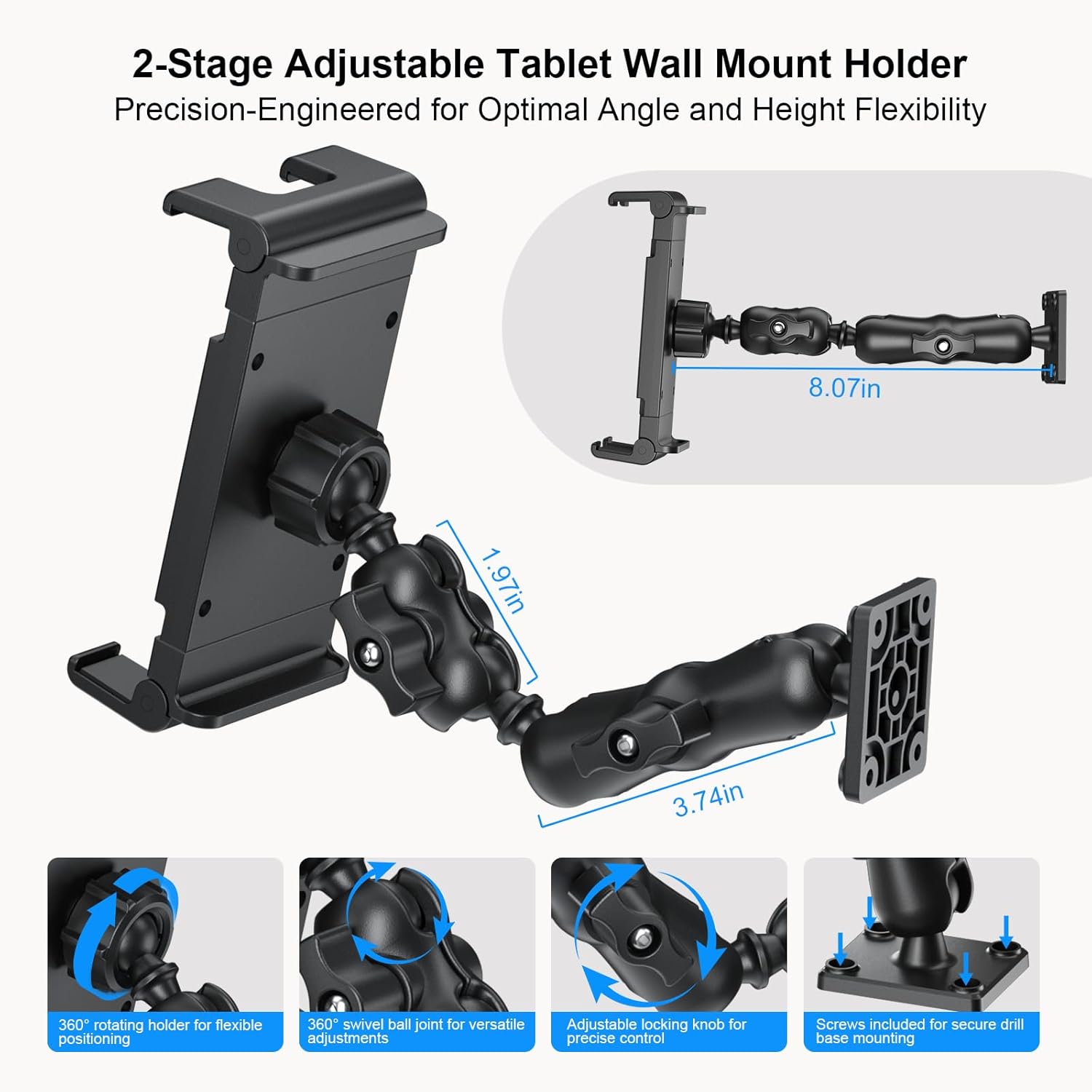 - 4. Versatile for Any Setting: Ideal for vehicles, homes, offices, or classrooms, this tablet wall mount delivers unwavering stability. Two precision knobs allow seamless angle adjustments, perfect for navigation, remote work, or studying with this iPad wall mount.