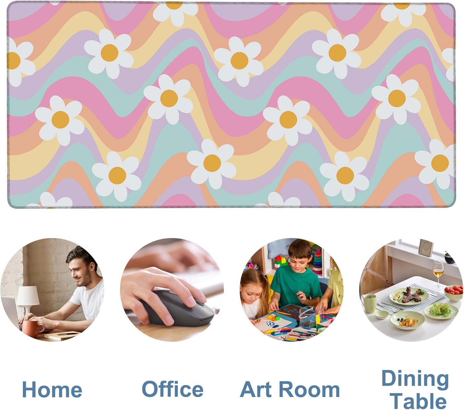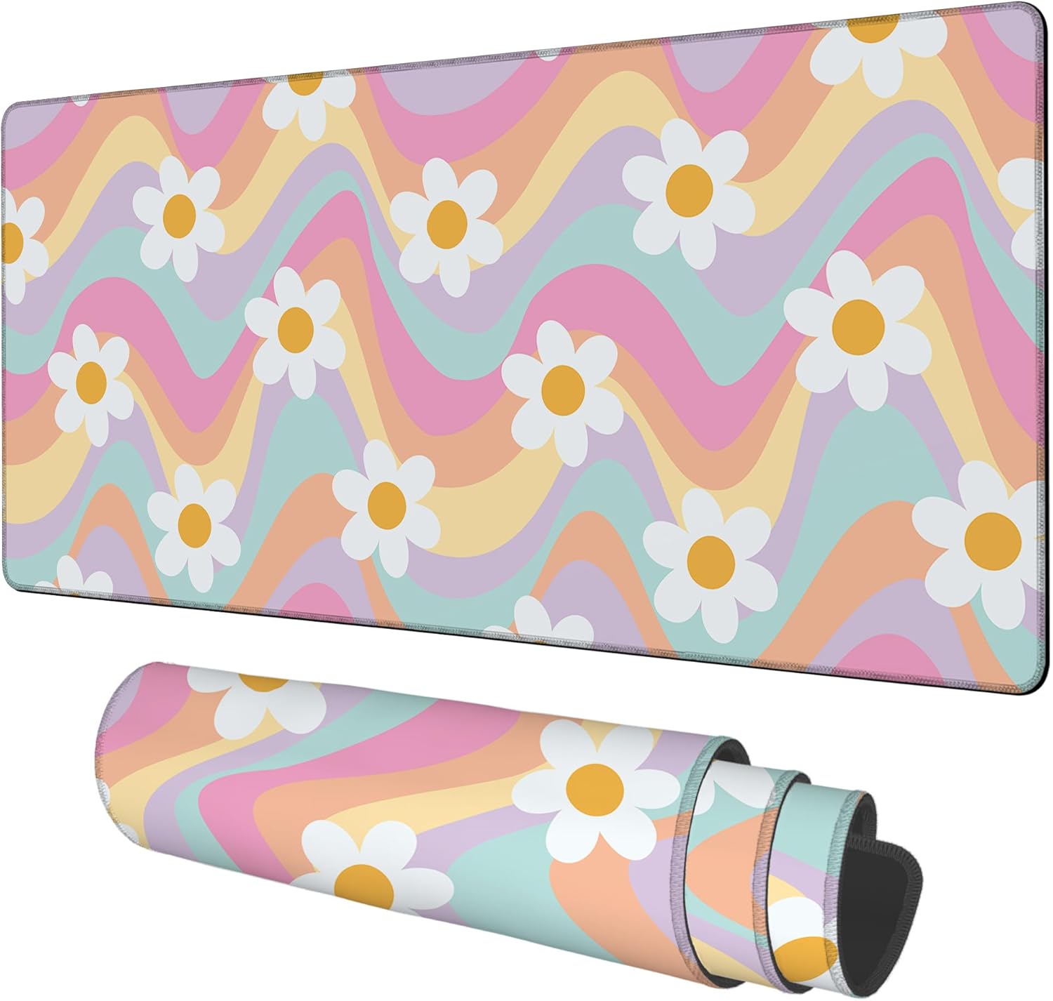 Large Mouse Pad Floral and Wavy Gaming Desk Pad Computer Keyboard Non-Slip Waterproof Mouse Mat with Rubber Base and Stitched Edges Entertainment Office Writing Desk Mat 35.4 x 15.7 Inches