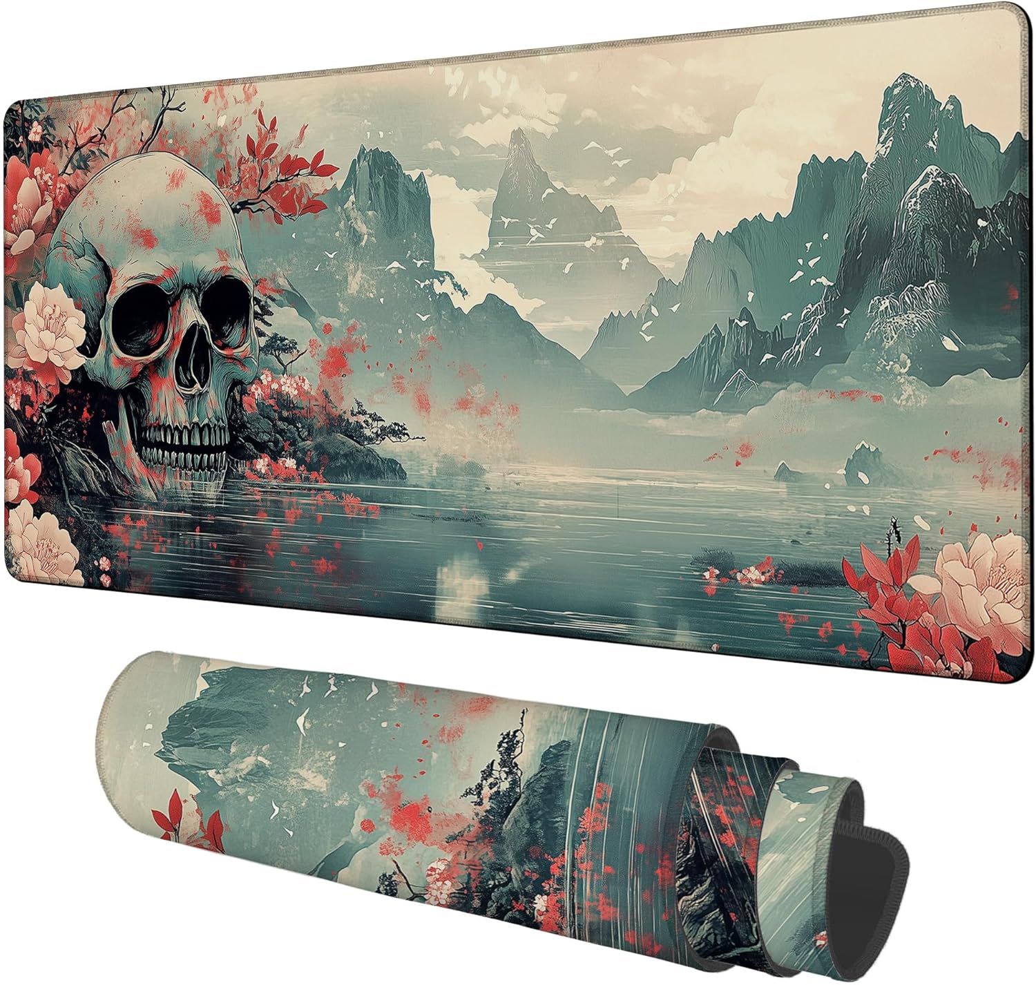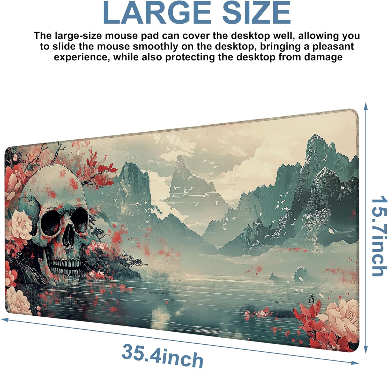 Gaming Desk Pad Large Extra Length Evil-Looking Skull Mouse Pad Keyboard Laptop Non-Slip Waterproof with Rubber Base Thick Stitched Edge Mouse Mat for Office Home 35.4 x 15.7 Inches