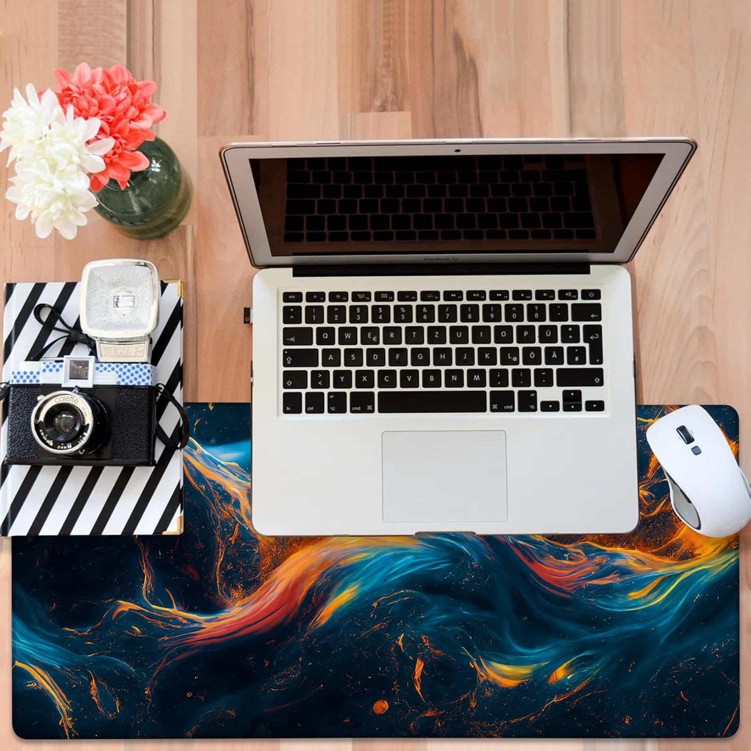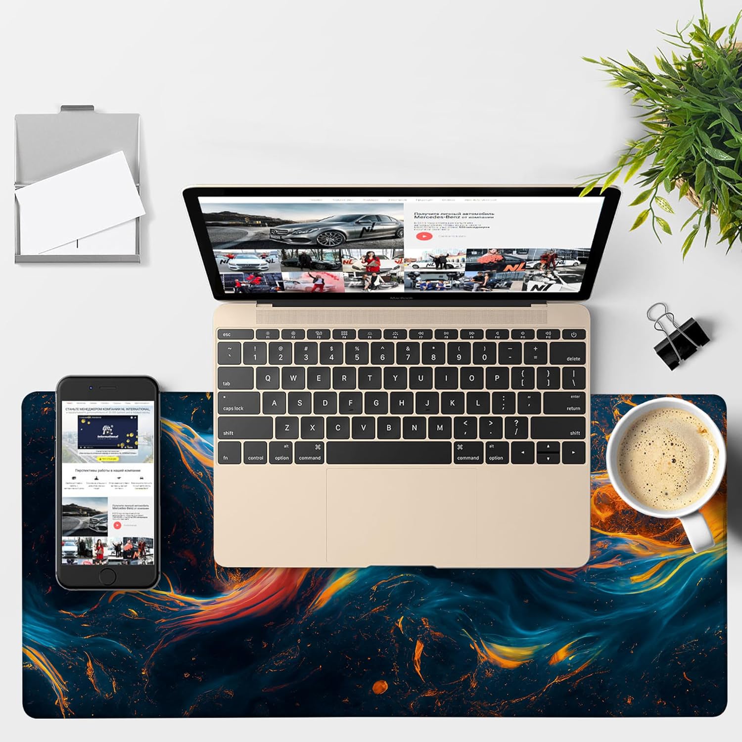Gaming Desk Pad Large Extra Length Abstract Colorful Art Mouse Pad Keyboard Laptop Non-Slip Waterproof with Rubber Base Thick Stitched Edge Mouse Mat for Office Home 35.4 x 15.7 Inches