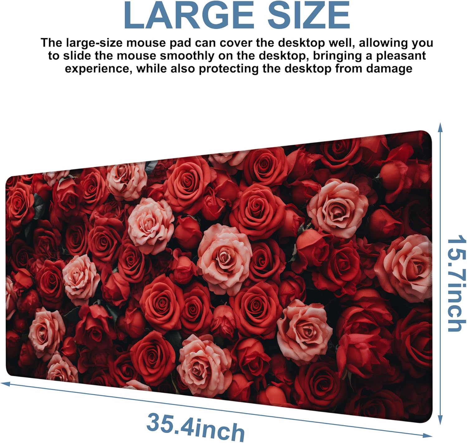 Beautiful Natural Roses Gaming Mouse Pad 3mm Thick Stitched Edge Waterproof Non-slip Large Computer Keyboard Mouse Mat,Suitable for Office Entertainment Decorative Desk Pad 35.4 x 15.7 Inches