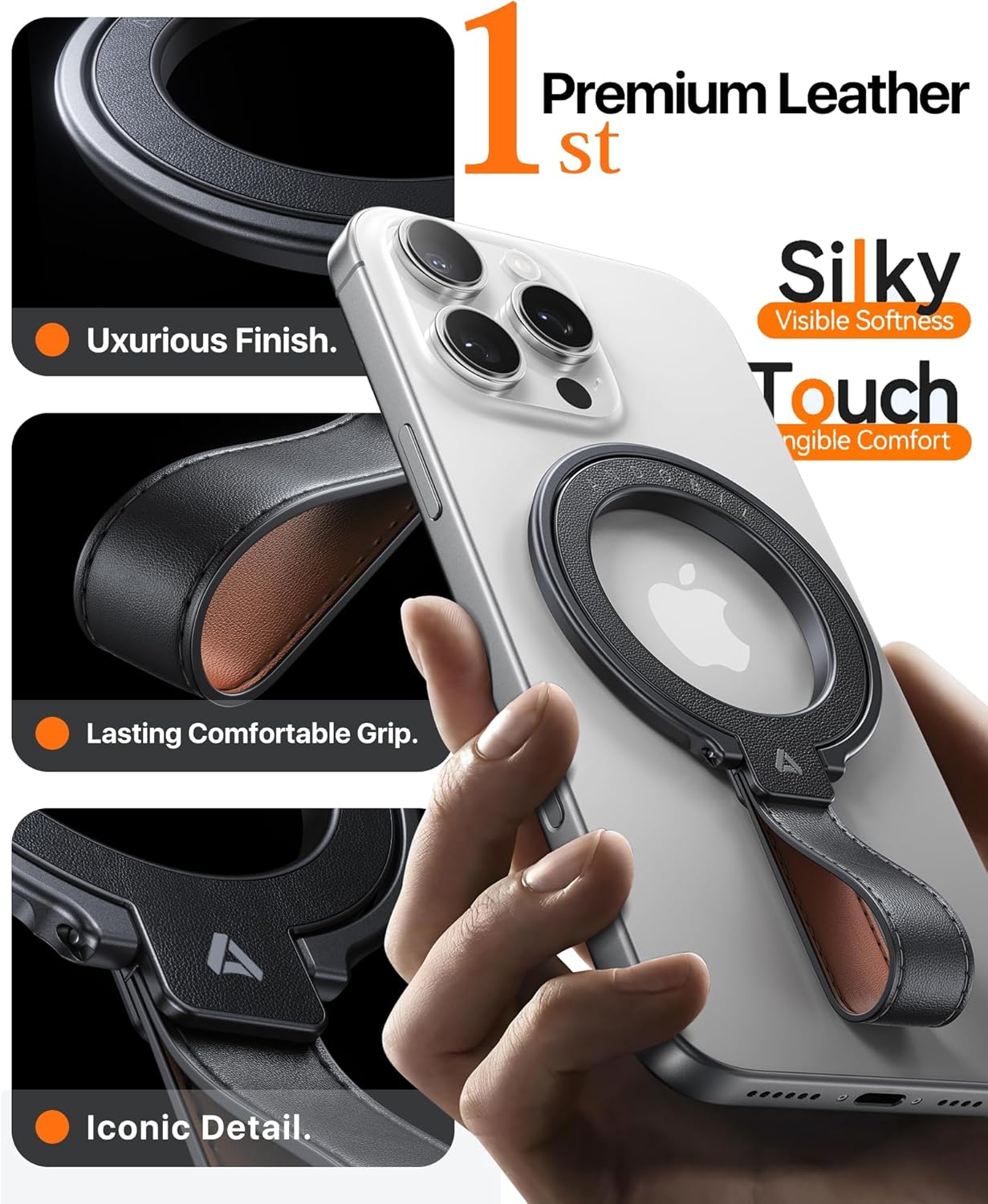 - Special Feature : Premium Leather MagSafe Phone Grip, Two-Side Magnet, Adjustable Kickstand, 360° Rotatable Magnetic Phone ring Holder, Pioneering Design Leather Loop Handle, Compatible with All Phone Premium Leather MagSafe Phone Grip, Two-Side Magnet, Adjustable Kickstand, 360° Rotatable Magnetic Phone ring Holder, Pioneering Design Leather Loop Handle, Compatible with All Phone