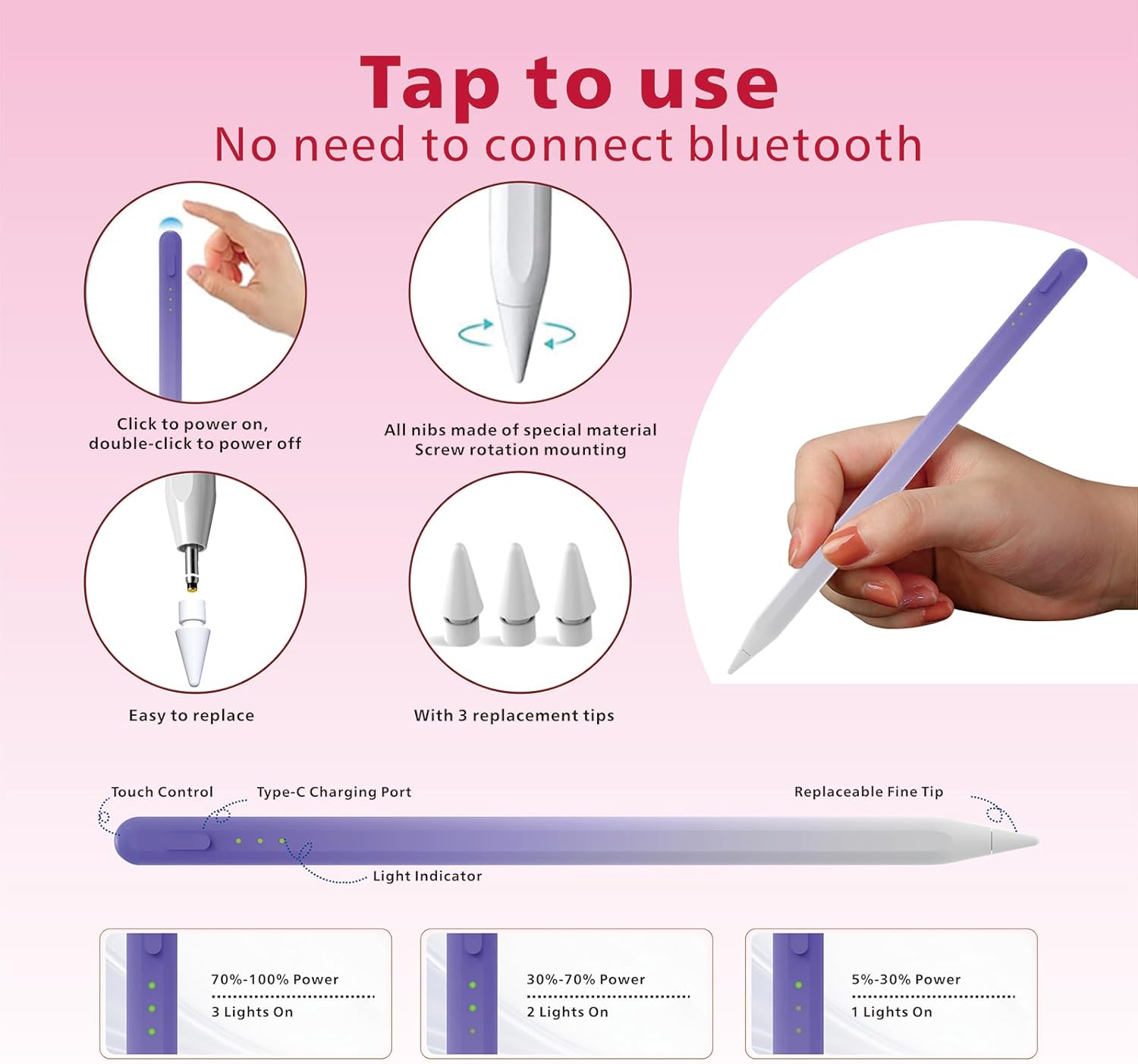 - 【Palm Rejection&Tilt Sensitivity】Stylus for iPad pencil 10th generations palm rejection design can free your hands, You can easily use your hands on the screen.Stylus for iPad pencil 10th generations utilizes the latest tilt technology, Tilt function enables you to paint different stroke of thickness and depth by varying stylus pen for iPad tip dip, perfect for drawing or writing on iPad.