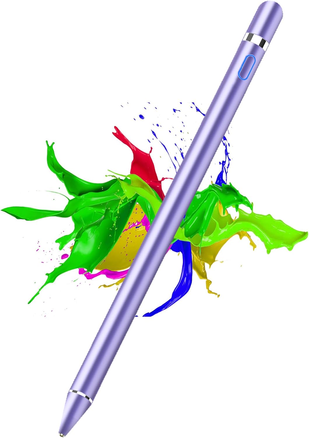 DOGAIN Active Stylus Pen for Touchscreen, iPad Pencil 1.5mm Fine Point Pen, Digital Pens Rechargeable for Tablet, Stylus Pens Compatible with iPad Air/Mini/Pro/Android/iPhone and Most Device - Purple