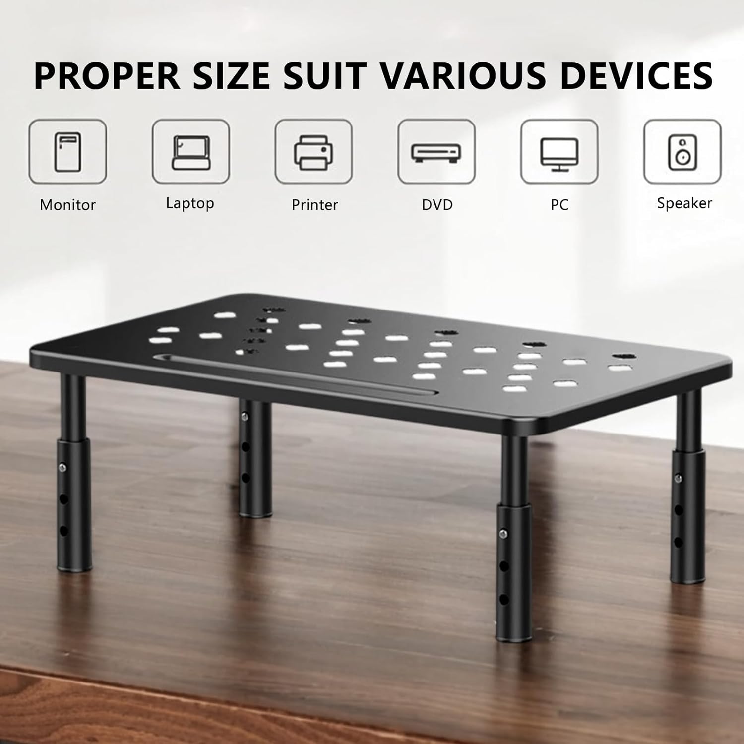 - 【Durable】Using high-quality metal material, the maximum load can be up to 44 pounds, not only suitable for monitors, but also for printers, laptops and other devices, to ensure stable support, not easy to deformation or shaking.