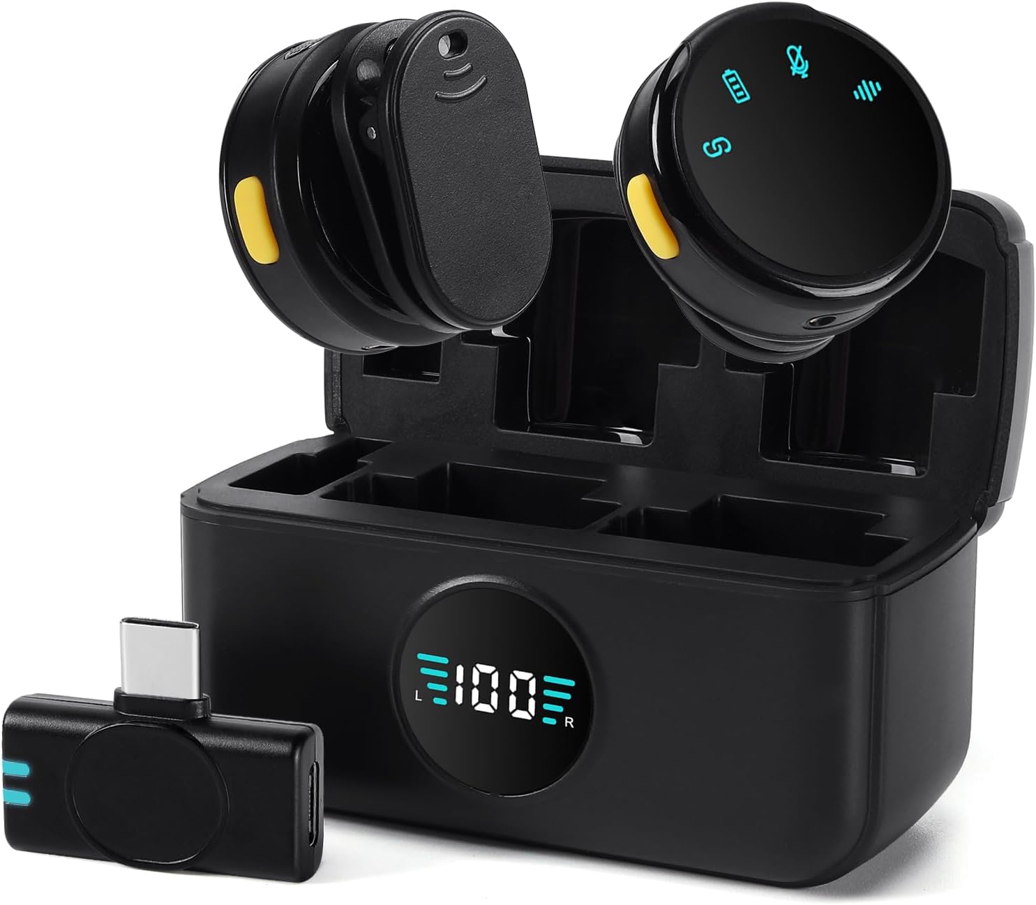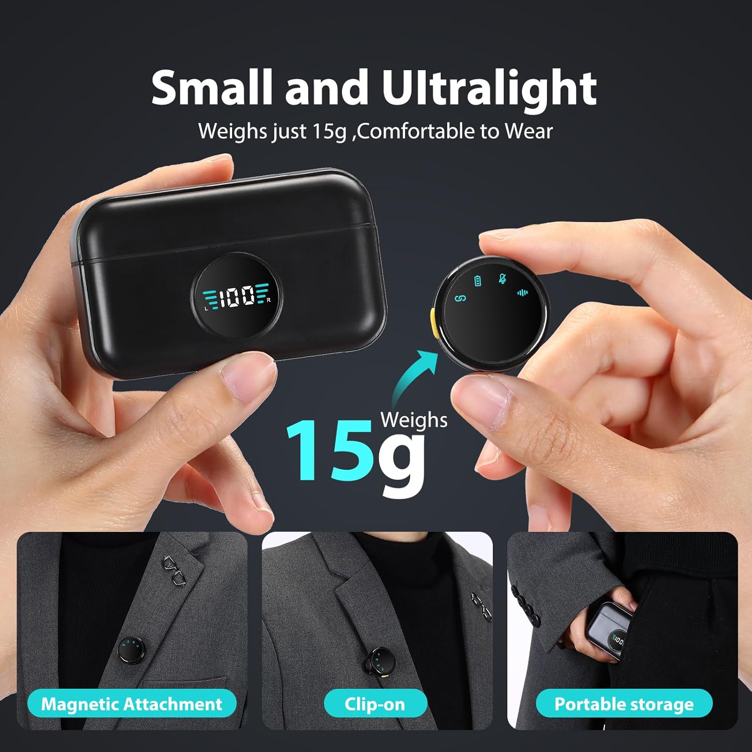 Wireless Lavalier Microphone with Charging Case,AI Noise Reduction,30H Endurance Time,Mini Wireless Microphone for iPhone 15 16/Android with USB-C,Mini Mic for Video Recording,YouTube,Vlogging