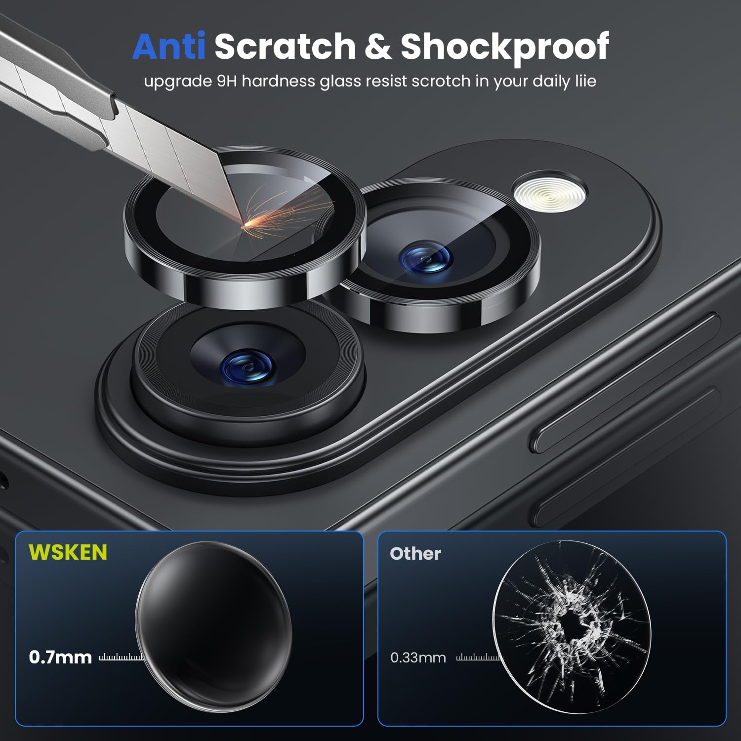 - Military Grade Shatterproof: WSKEN galaxy s25 edge camera screen protector has a hardness level far exceeding 9H. Guarantees durability and lightness, over 5000+ times drop test, provide powerful scratch resistance against everyday hard and sharp objects. Providing the highest level of camera protection in your daily life.