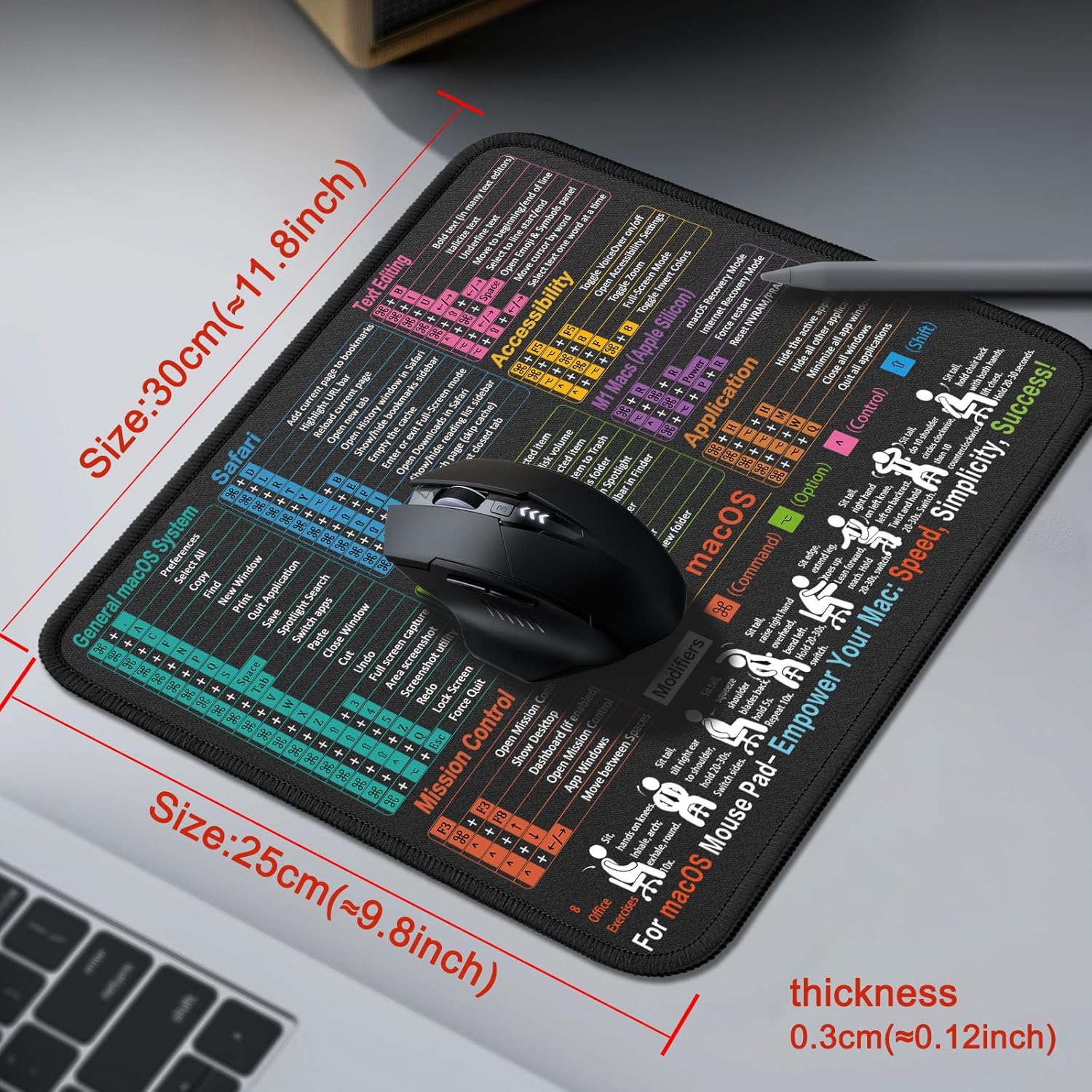 - Compact & Portable Design: This Small macOS Cheat Sheet Mouse Pad measures 11.8" x 9.8", offering a portable mouse pad. Its compact size fits in bags or laptop cases, suitable for professionals, students, or mobile use.
