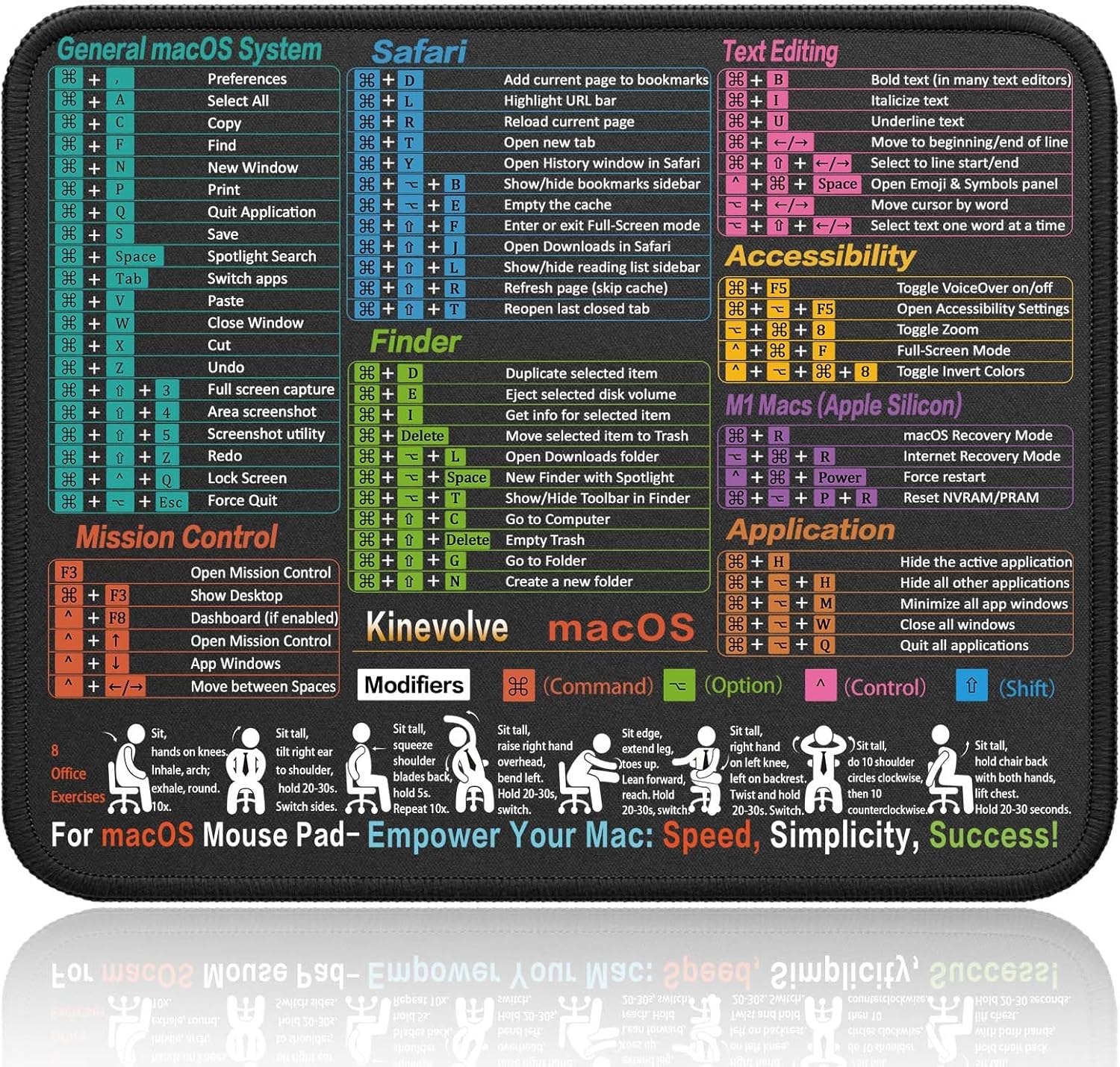 - Durable & Non-Slip Design: This macOS Shortcut Mouse Pad features stitched edges to reduce fraying. The non-slip rubber base helps keep it securely in place, and the water-resistant fabric allows for easier maintenance.