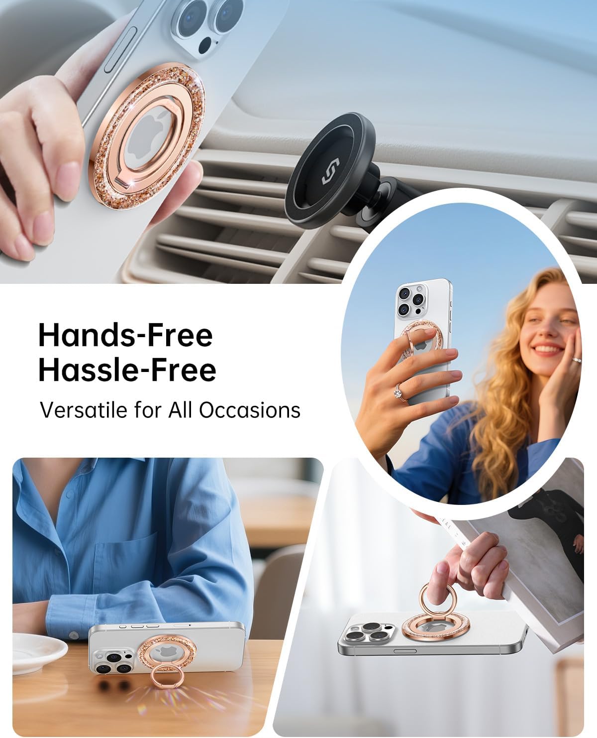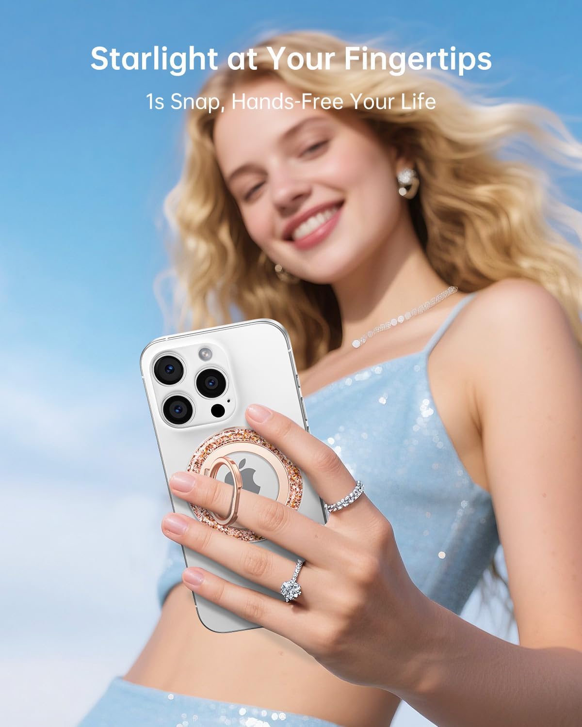 - 【Glitter Magnetic Phone Grip】 Syncwire Glitter Magnetic phone ring holder makes a perfect combination of fashion and functionality. Crafted with a magnetic design, it seamlessly attaches to MagSafe compatible cases, ensuring your phone stays securely in hand. The glittery is eye-catching, offering a touch of luxury to daily device usage. It is a good gift for your wife, daughter, mother, aunt, families, girlfriend, friends or yourself.
