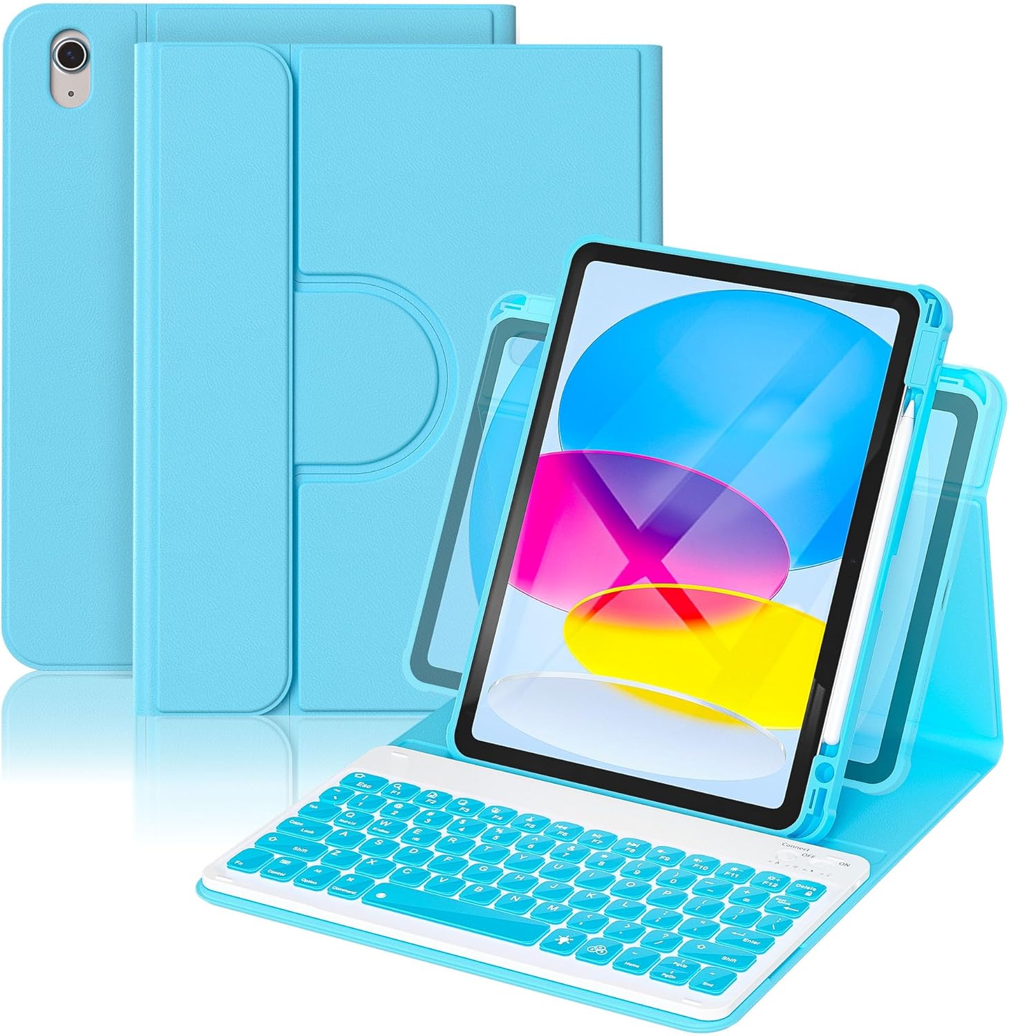 YBING Keyboard Case for iPad 10th Gen 10.9 inch(2022) & 11th Gen(A16, 2025), 360 Rotation Magnetic Cover with 7-Color Backlit Wireless Detachable Keypad with Pencil Holder for iPad 11th/10 Gen (Blue)