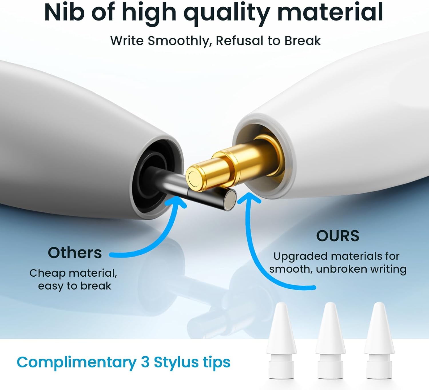 - 💡【Multiple Replaceable Long-lasting Nibs】The nibs of our iPad pens are extremely long-lasting and will last a long time without wear and tear. And we also come with 3replaceable pen tips. And it's very easy to replace the nib. This pencil looks great and has a stylish design. Our iPad Pencil features cutting-edge ergonomics that provide a comfortable grip and fit seamlessly into your hand. Its balanced weight and intuitive design ensure fatigue-free use.