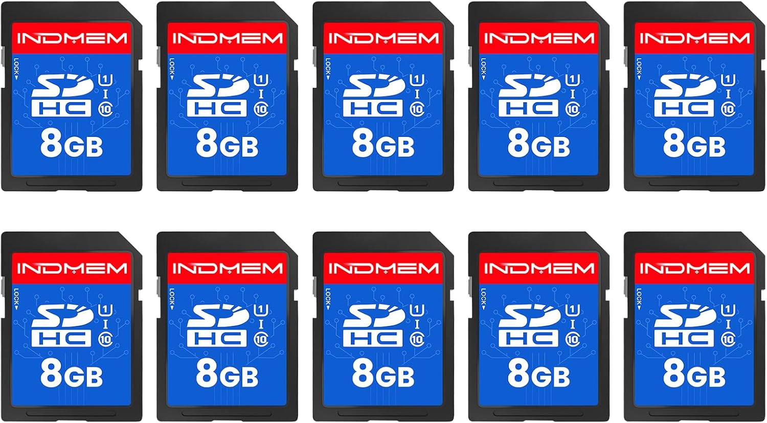 INDMEM SD Card 8GB, 10-Pack UHS-I Class 10 MLC Flash Memory Card, High-Speed Secure Digital Cards for Cameras, DSLR, Action Cams - Reliable Storage