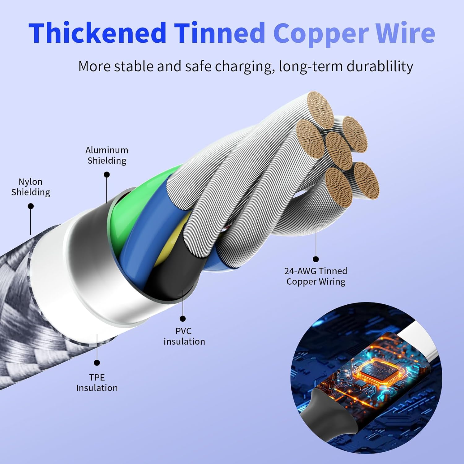 - 【DURABLE MATERIALS】:Powerful military fiber, the most flexible, strongest material, increases tension by 200%.Special strain relief design withstands 20,000+ bending tests,MPATIBY dual charger cord resulting in a longer lifespan compared to ordinary charger cord, this usbc charging cable for multiple devices can meet your long-term daily use.