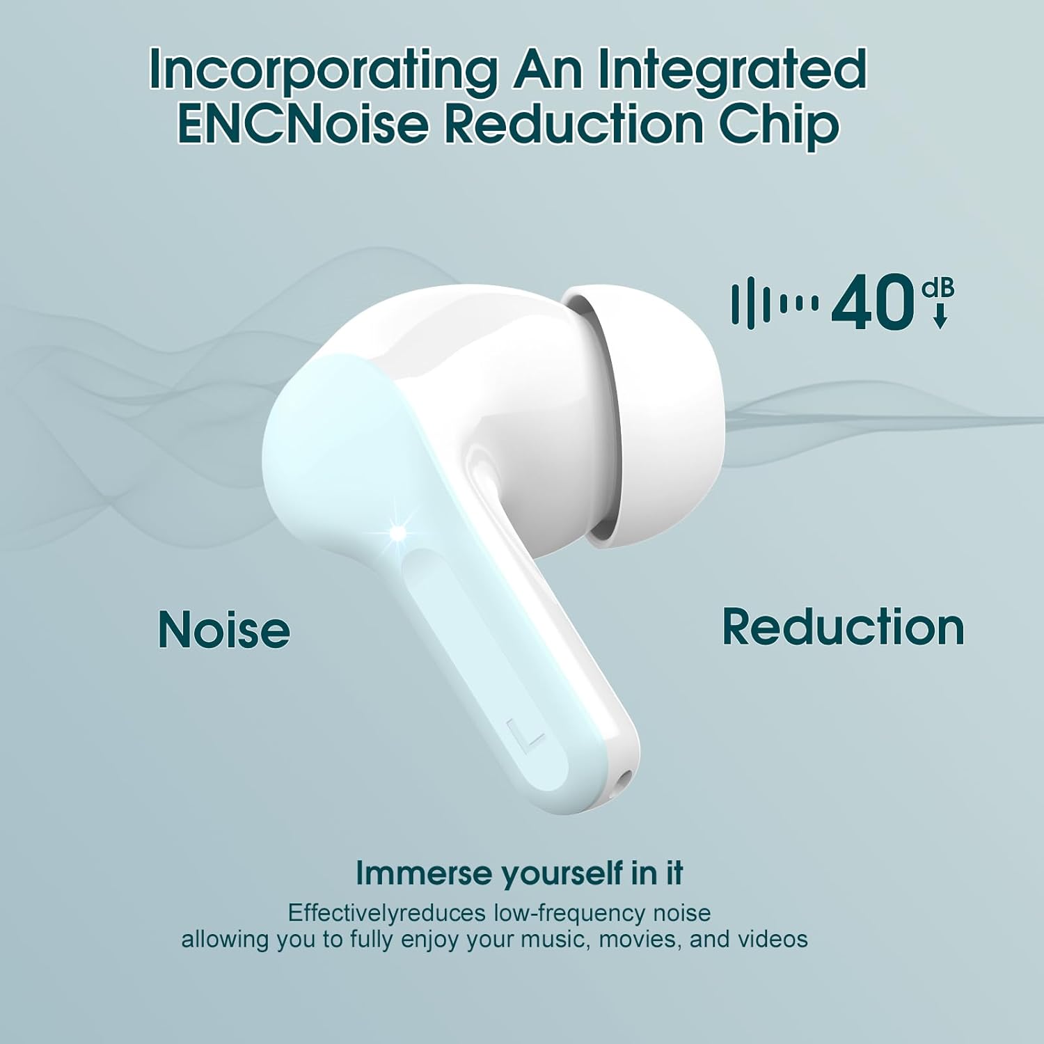 - Clear call experience: This noise cancelling earbuds uses advanced ENC call noise reduction technology to effectively filter out more than 80% of external noise, ensuring that the other party's voice remains clear during busy commuting, work or exercise, providing you with a high-quality call experience. The Headphones equipped with 4 high-performance microphones, it can accurately capture your voice, so that the other party can always hear clearly throughout the call even in a noisy environment.
