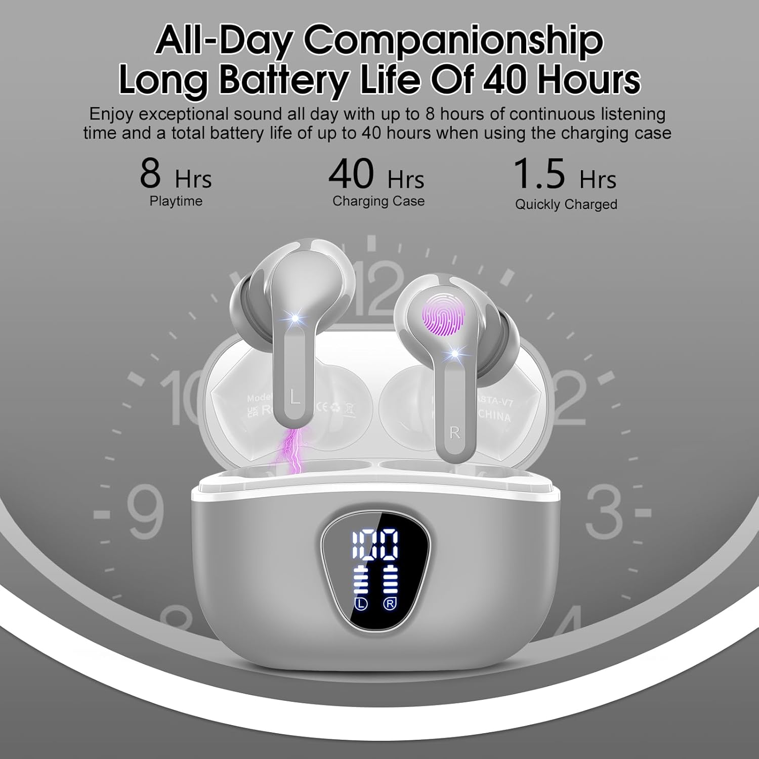 - 48H long-lasting battery life & dual LED digital display: Up to 8 hours of music playback on a single charge (1.5h only) with the charging box, this in ear headphones offers up to 48H of battery life, ensuring you can use it for a long time without frequent charging.The LED display clearly shows the battery level of the earbuds wireless bluetooth and the charging box, ensuring you always know the remaining power and enjoy an uninterrupted music experience during a long journey or a busy workday.