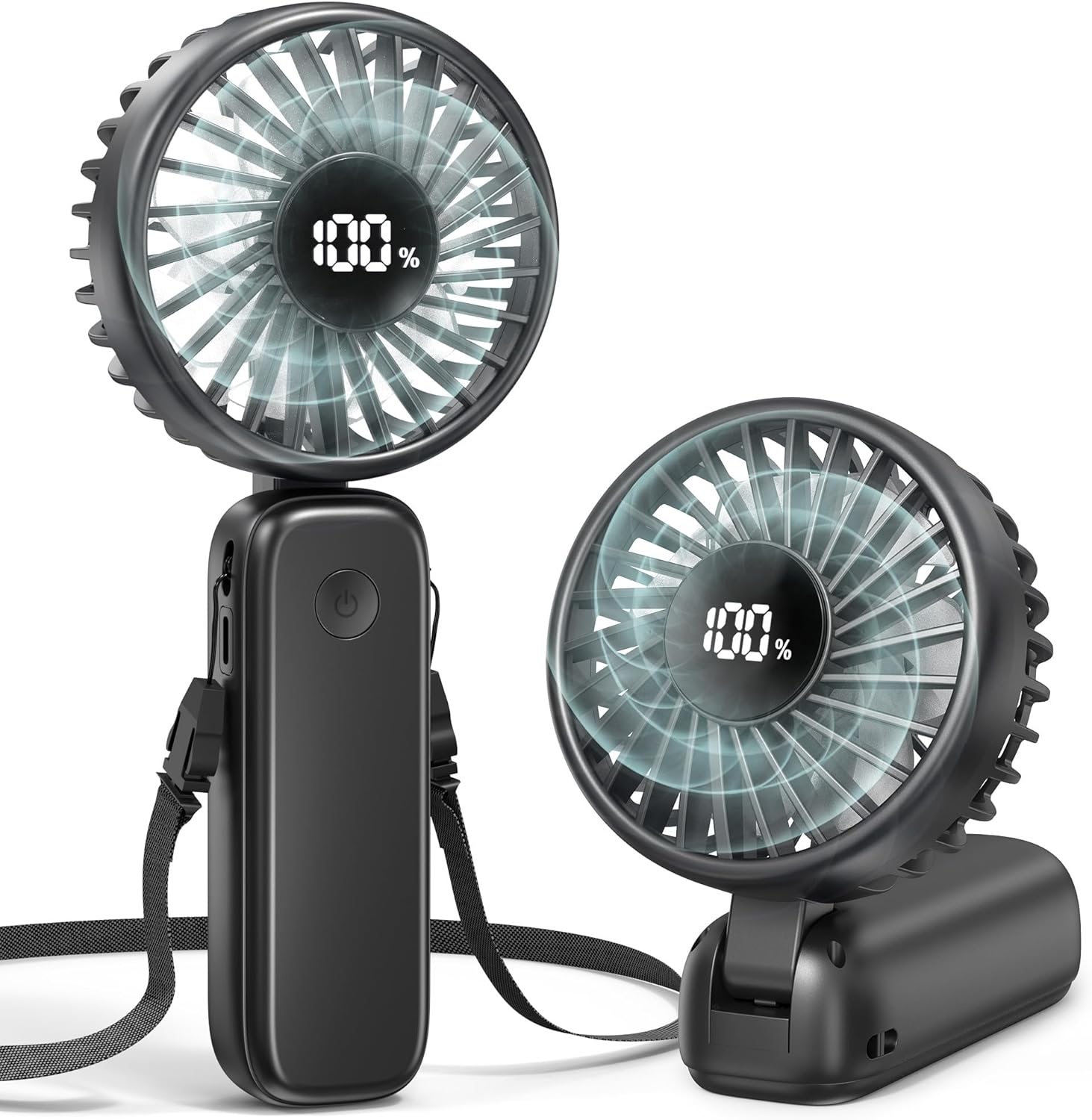 - Versatile 3-in-1 Design: With its innovative 95°foldable design, this travel fan can effortlessly switch between handheld fan, table fan, and wearable neck fan(neck lanyard included). The ultimate cooling companion for on-the-go cooling